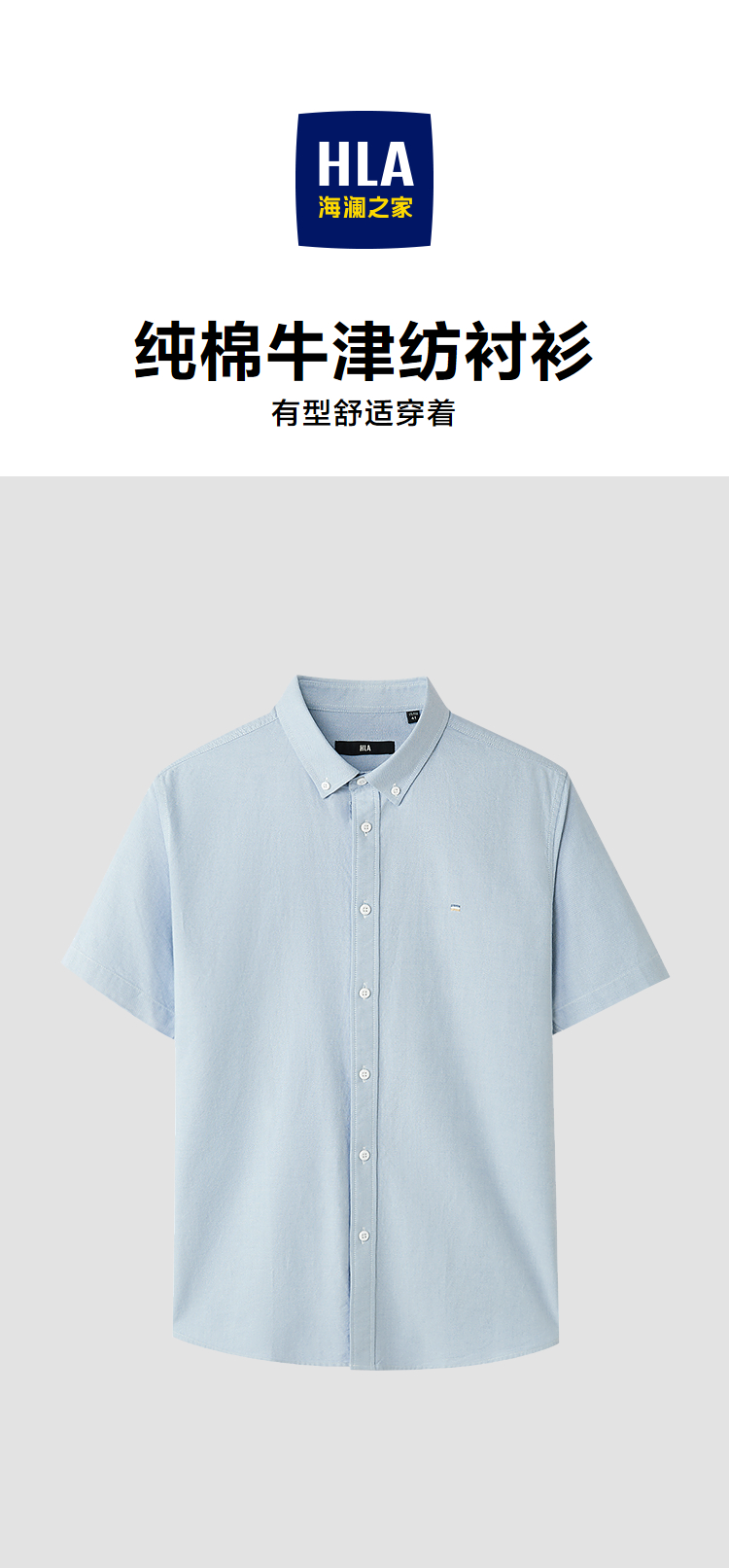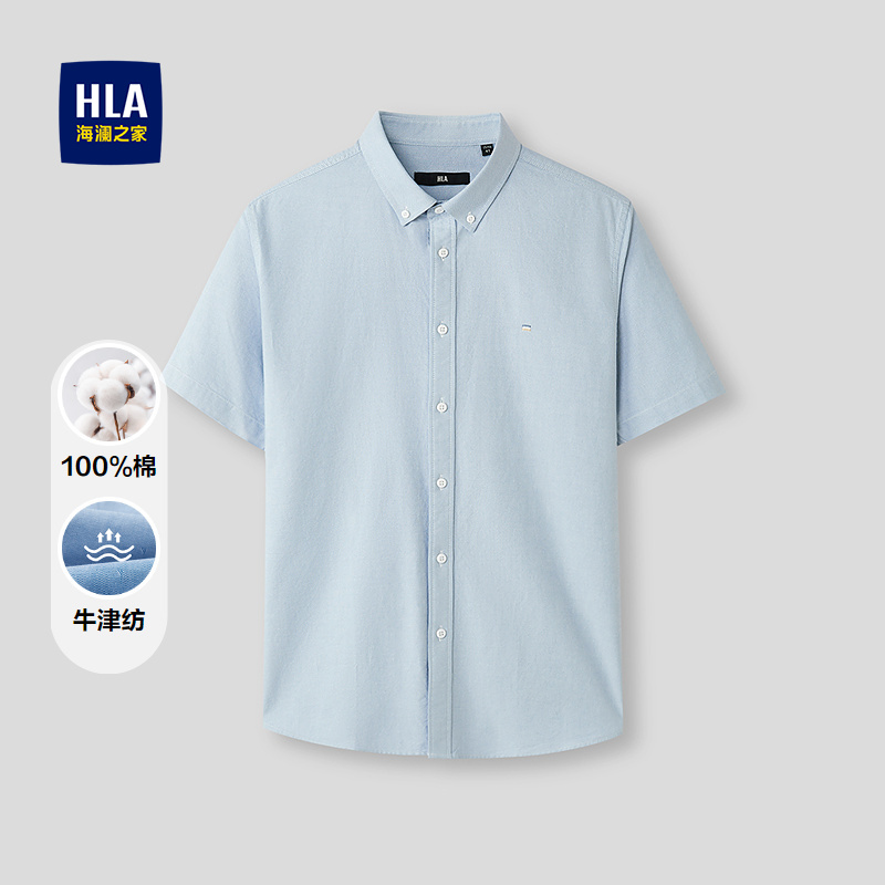 已选:HLA海澜之家纯棉牛津纺短袖休闲衬衫26春夏新清爽简约时尚上衣男HNECD2F003A