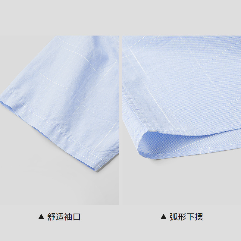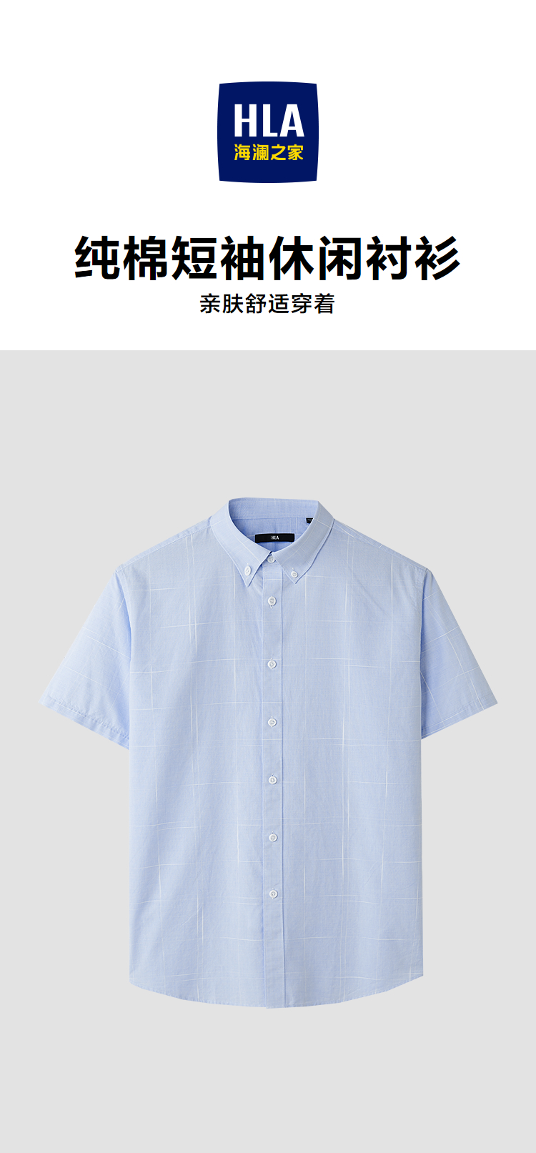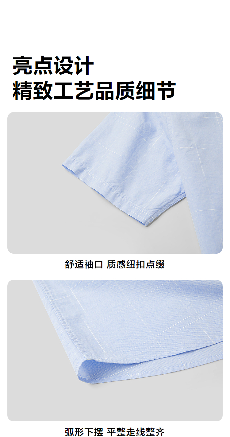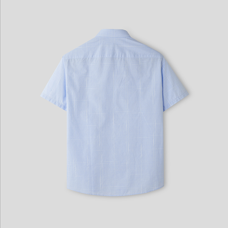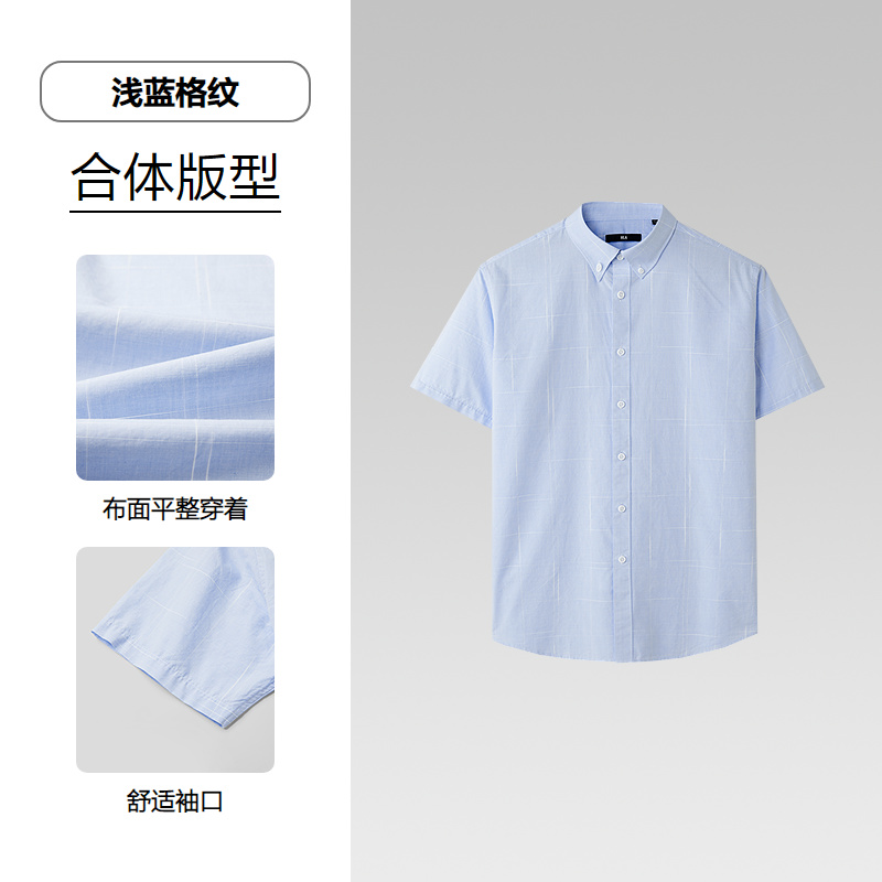已选:HLA海澜之家纯棉短袖休闲衬衫26春夏新款扣领尖领提花格纹衬衣男HNECD2F021A