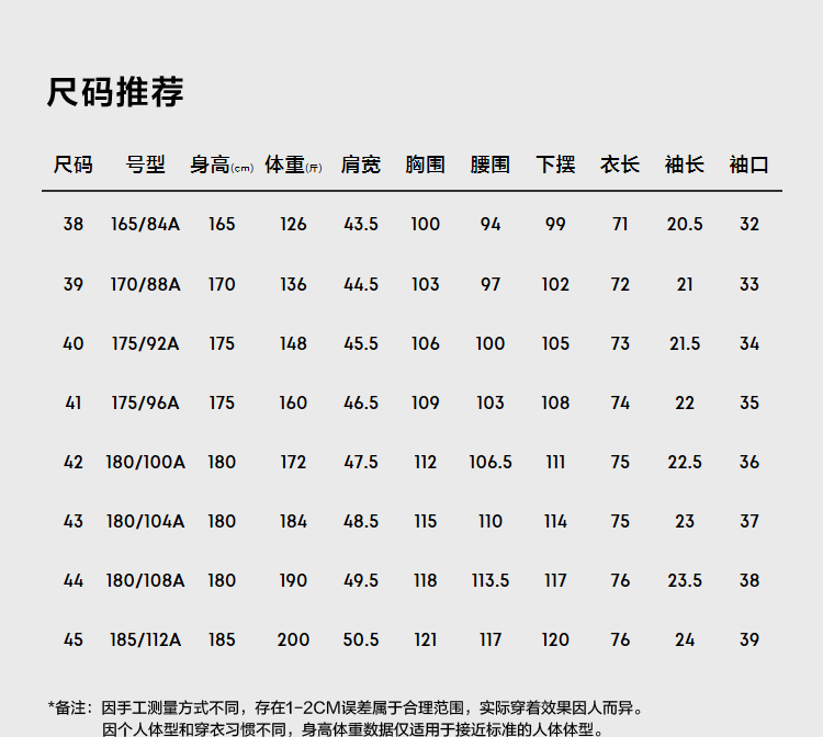 尺码颜色