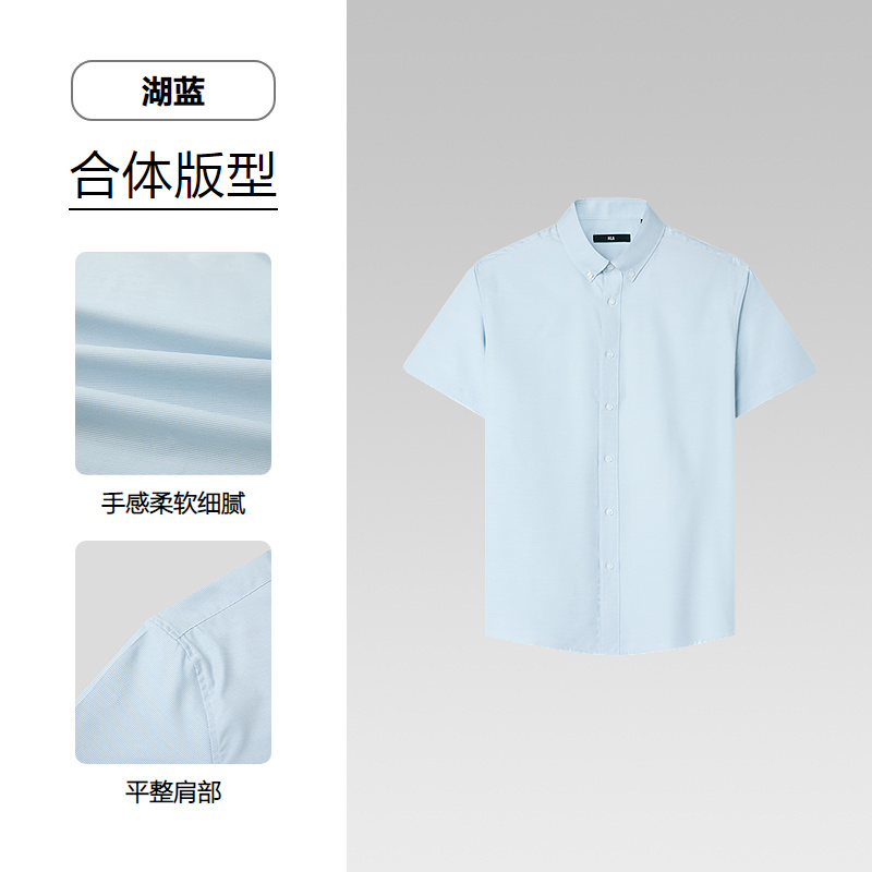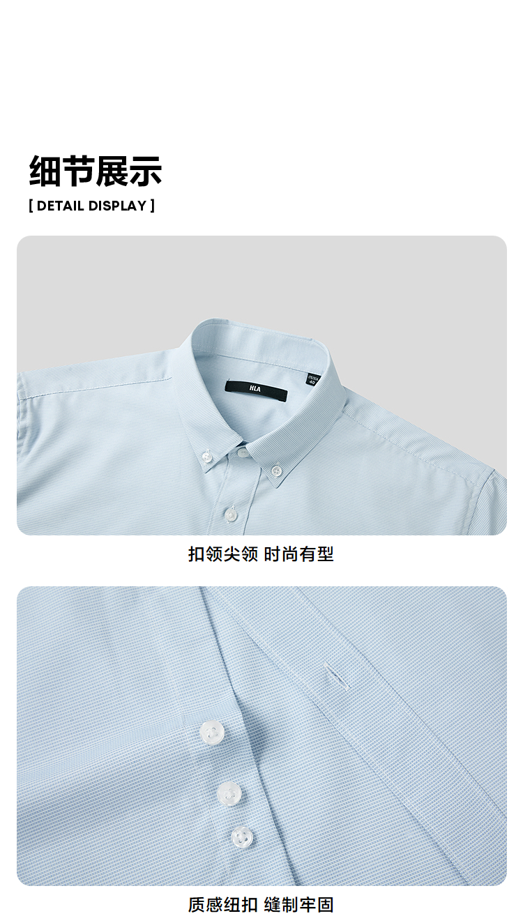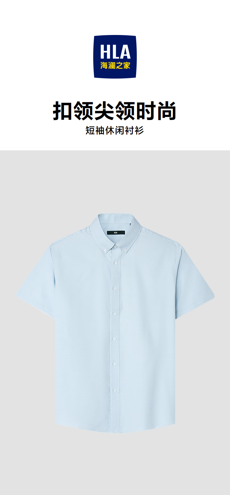 已选:HLA海澜之家国民臻品短袖休闲衬衫26春夏新款扣领尖领时尚衬衣男HNECD2F059A
