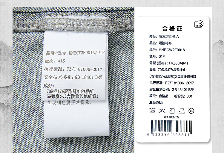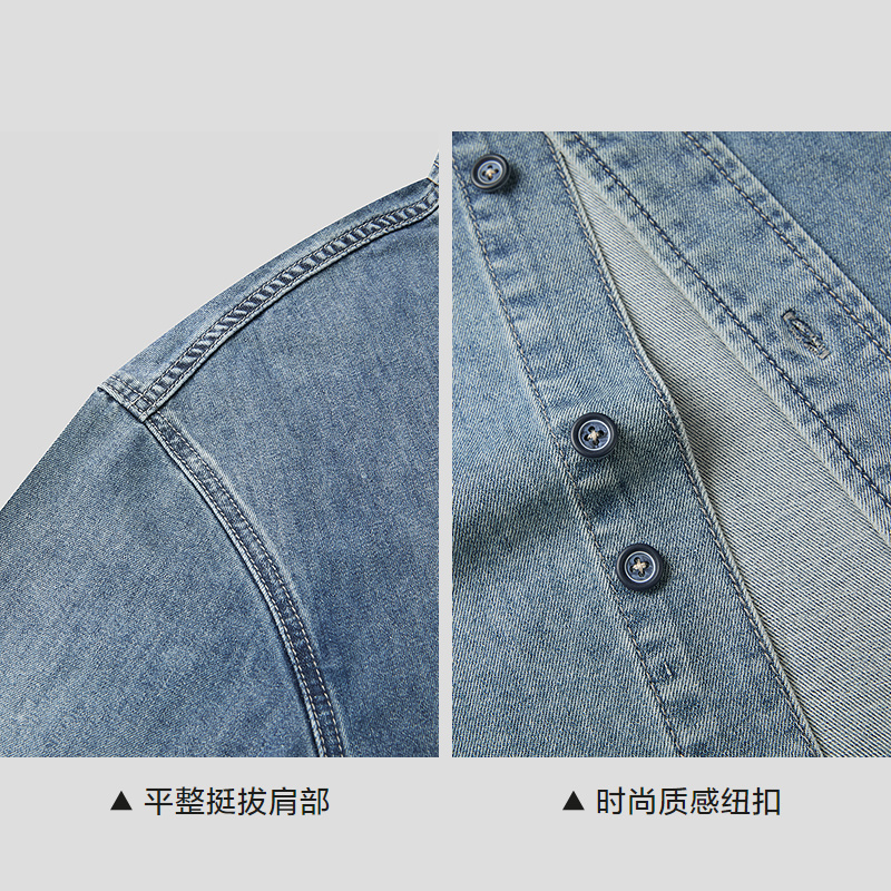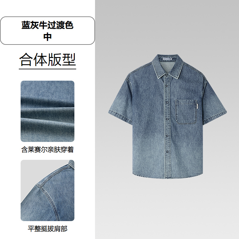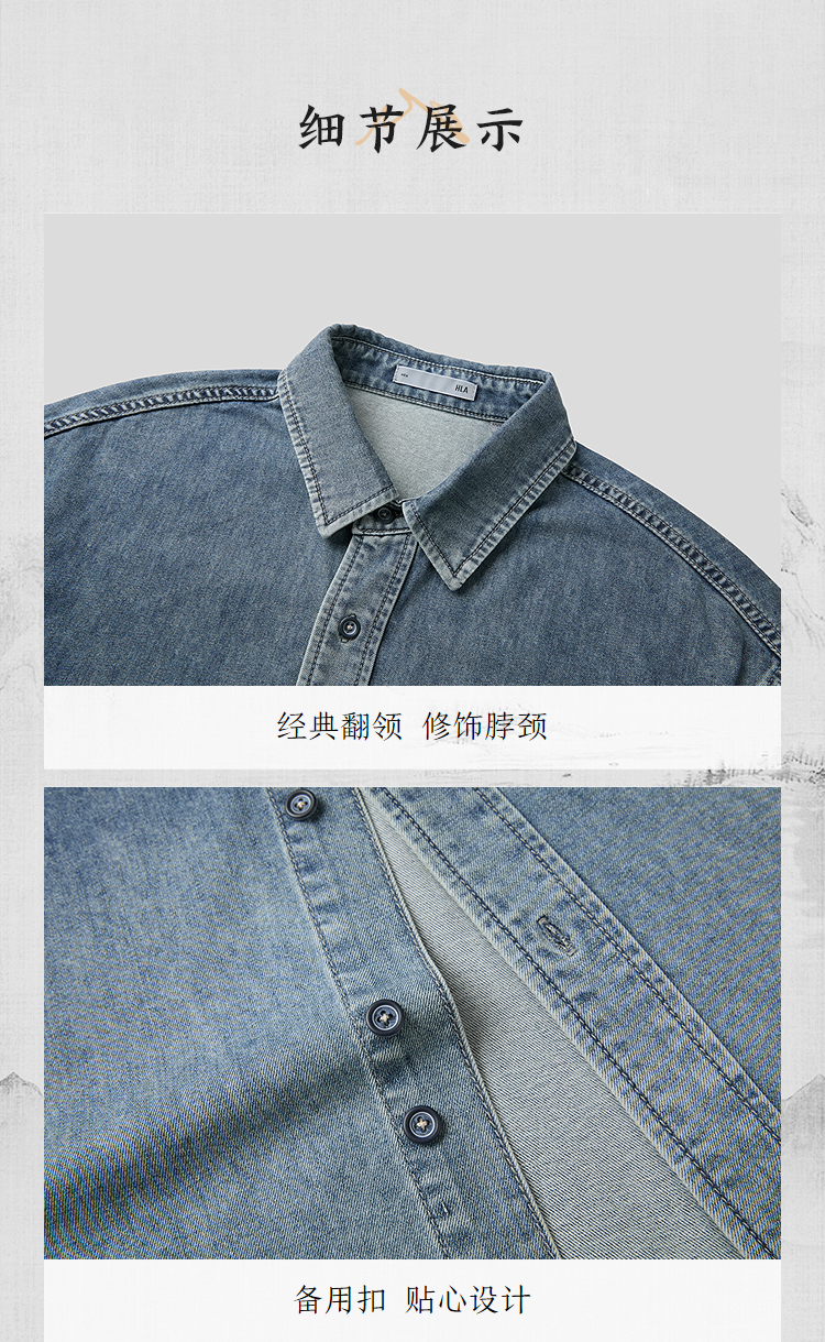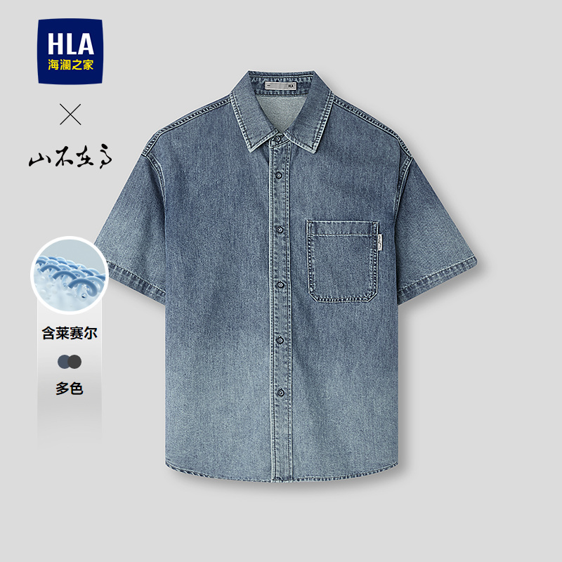 已选:HLA海澜之家山不在高系列时尚衬衫26春秋新含莱赛尔牛仔短衬男HNECW2F001A