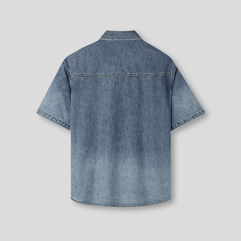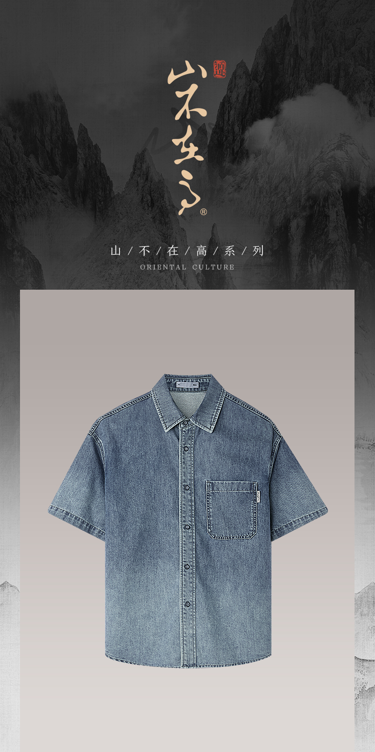 HLA海澜之家山不在高系列时尚衬衫26春秋新含莱赛尔牛仔短衬男HNECW2F001A