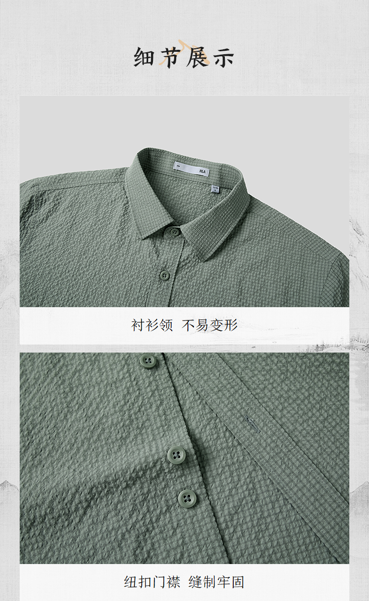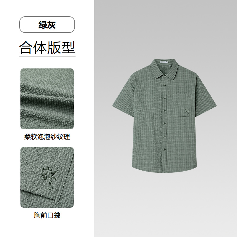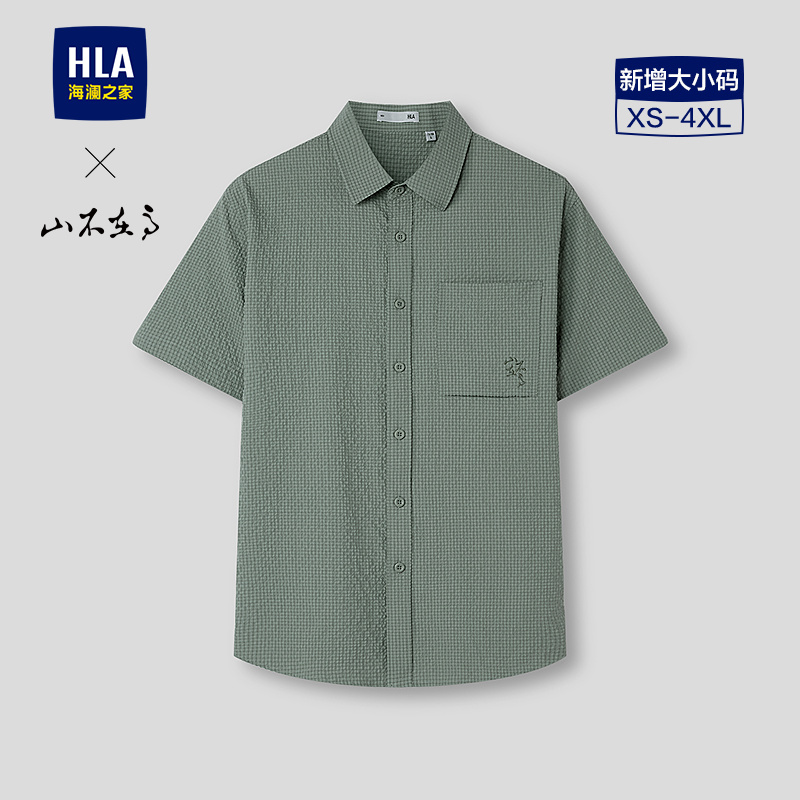 已选:HLA海澜之家山不在高系列短袖衬衫2026春夏新款泡泡纱休闲衬衣男HNECW2F034A