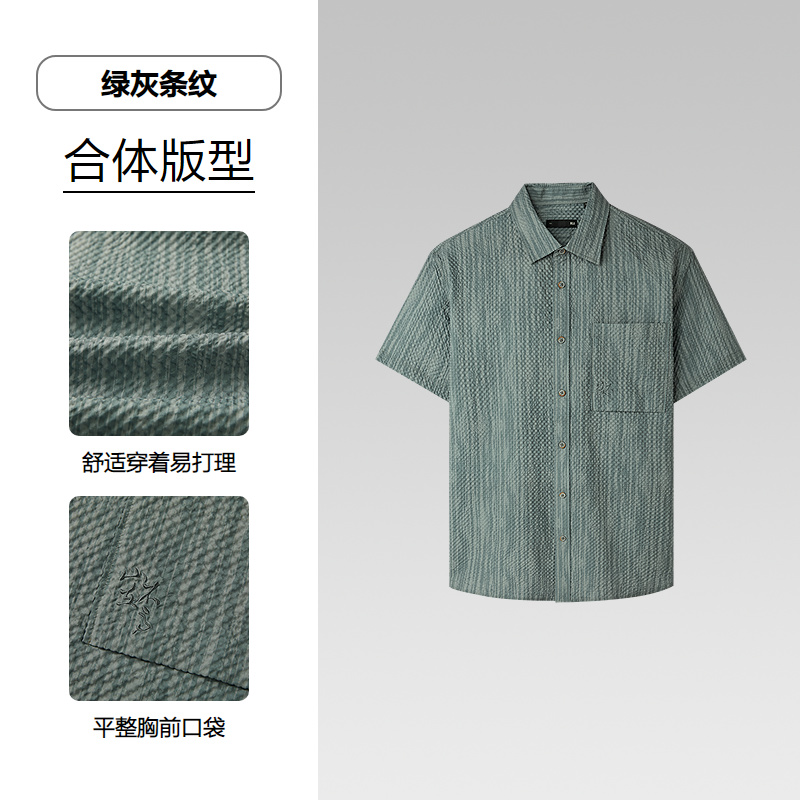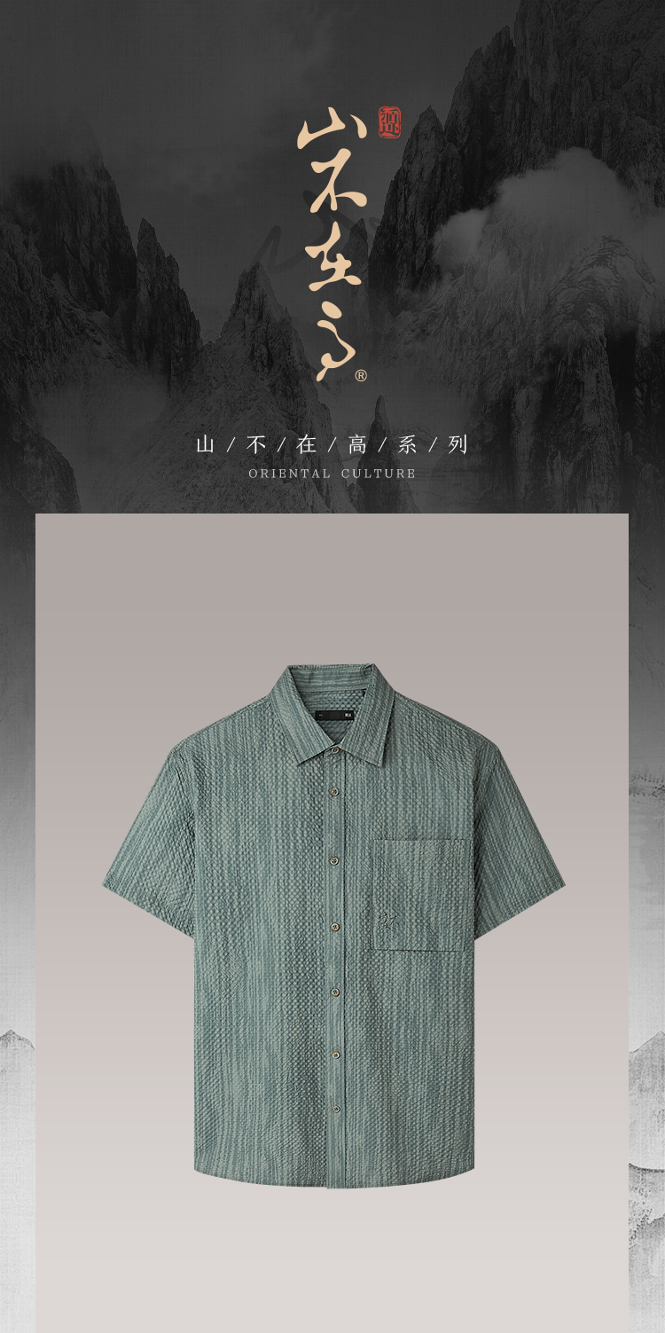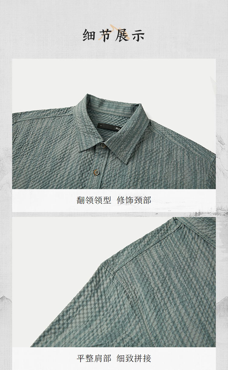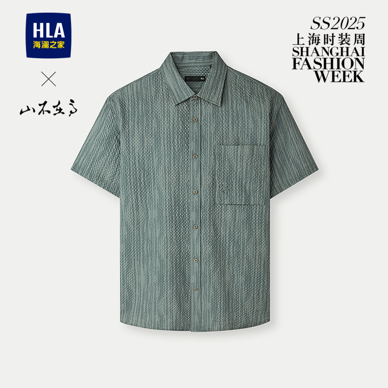 HLA海澜之家秀场同款山不在高系列短袖时尚衬衫2025春夏新衬衣男HNECW2J016A