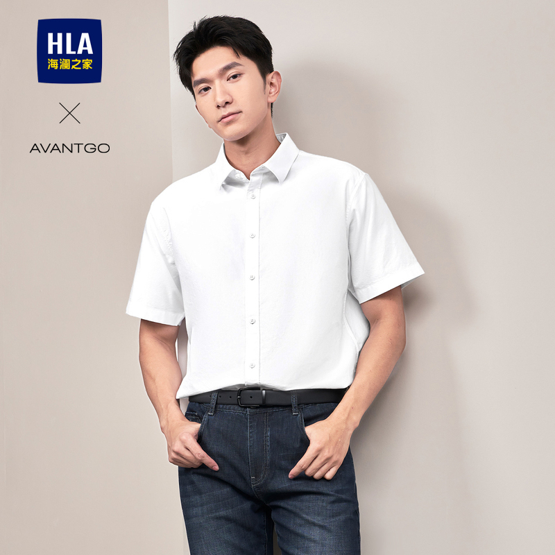 HLA海澜之家轻商务经典系列短袖衬衫24春夏新款纯棉宽松白衬衣男HNECW2W010A