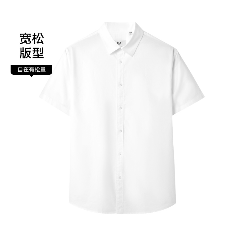 已选:HLA海澜之家轻商务经典系列短袖衬衫24春夏新款纯棉宽松白衬衣男HNECW2W010A