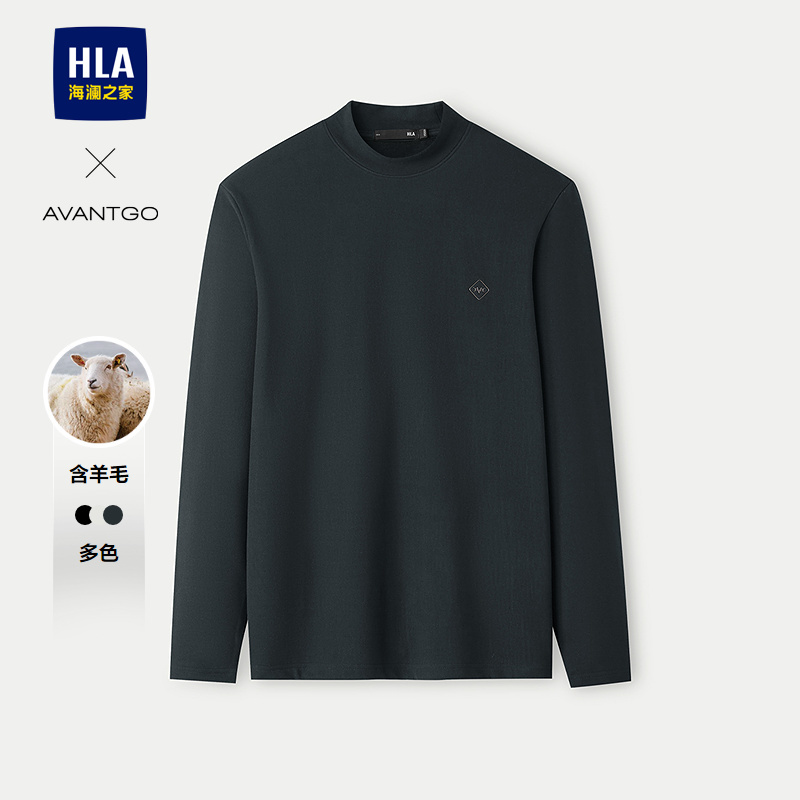 已选:HLA海澜之家轻商务经典系列长袖T恤25春秋新含羊毛保暖长袖男HNTAW3J029A