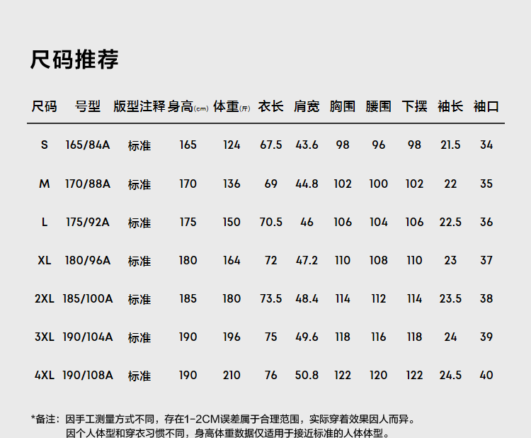 尺码颜色