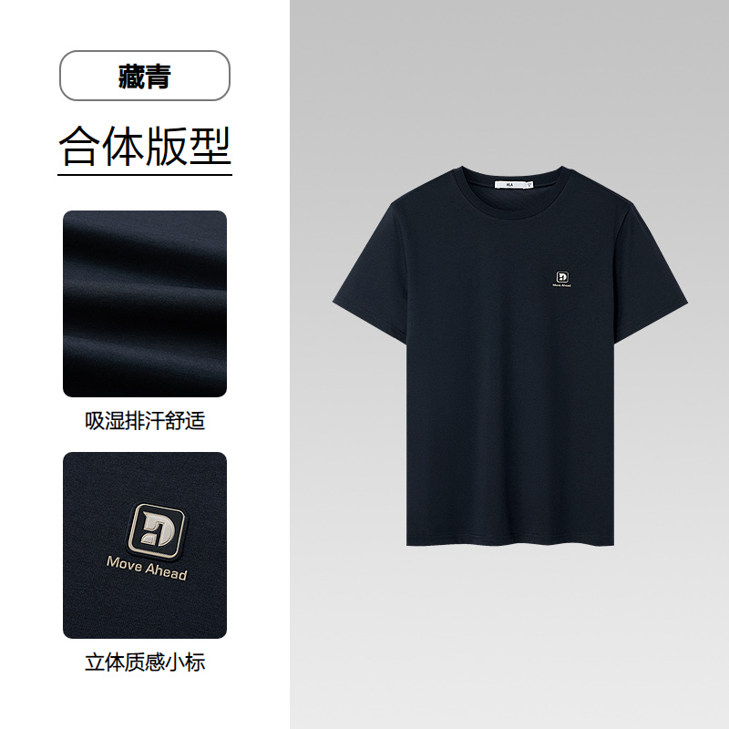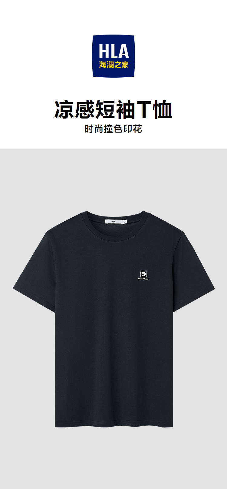 HLA海澜之家凉感透气短袖T恤26春夏新吸湿排汗高周波印花短袖男HNTBJ2F318A