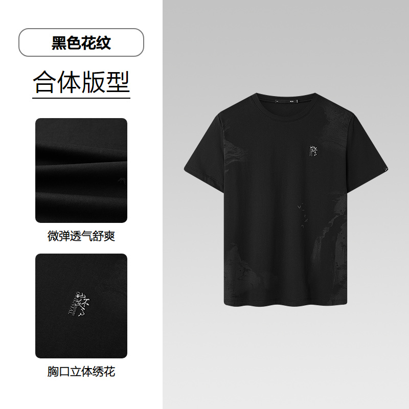 HLA海澜之家山不在高系列短袖T恤26春秋新凉感圆领绣花上衣男HNTBW2F069A