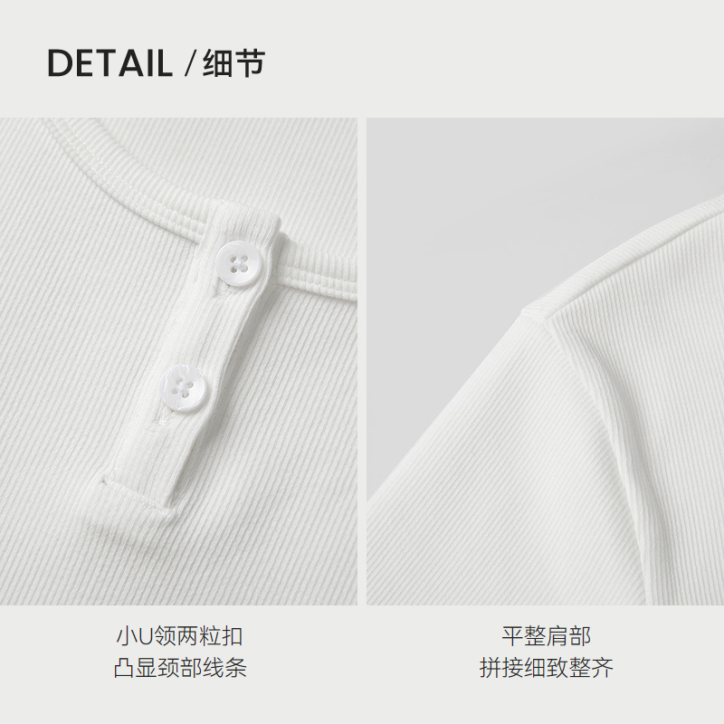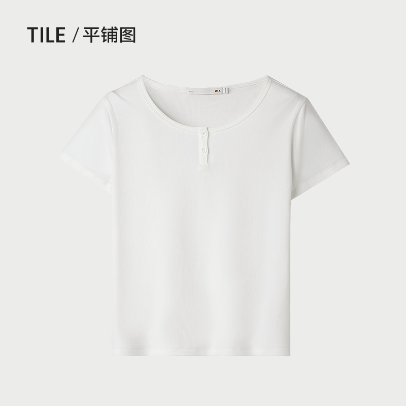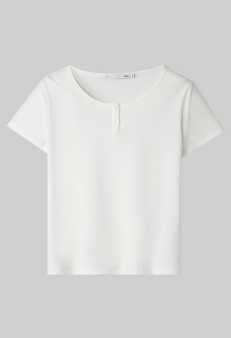 HLA海澜之家U领时尚短袖T恤26春夏新开扣门襟弹力内搭短袖女装HNTBW2F504A