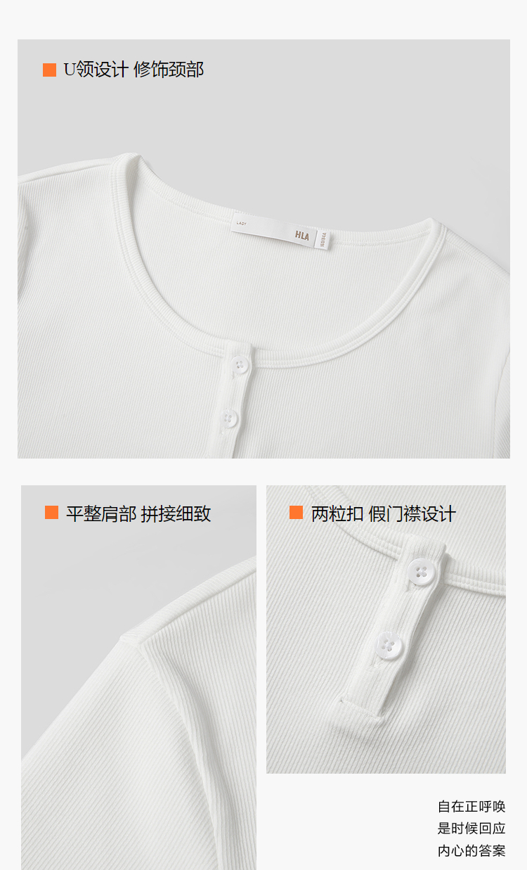 已选:HLA海澜之家U领时尚短袖T恤26春夏新开扣门襟弹力内搭短袖女装HNTBW2F504A