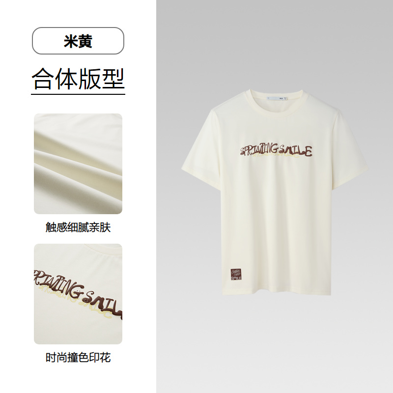 已选:HLA海澜之家SPRINTING SMILE系列短袖T恤25春夏新凉感印花短袖男HNTBW2J034A