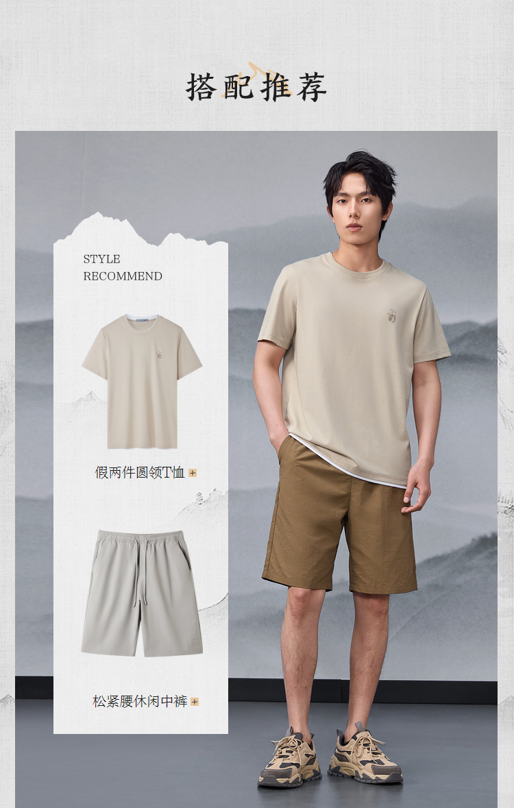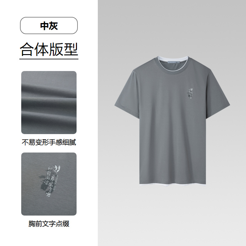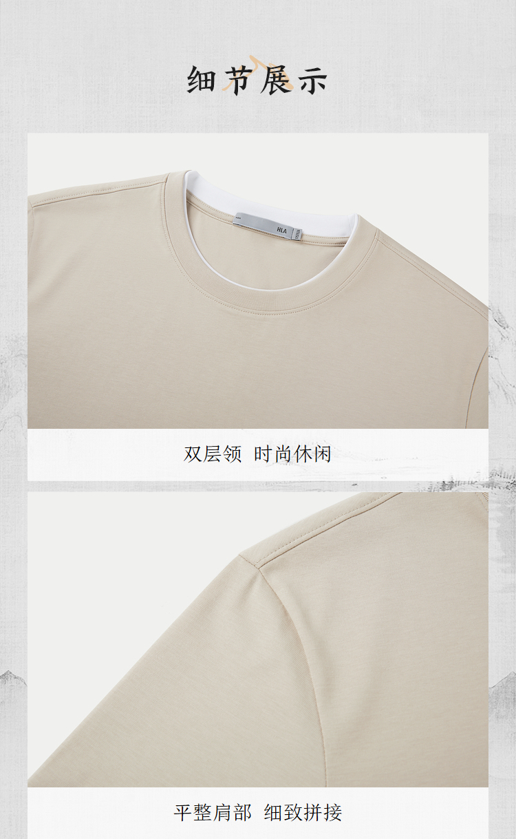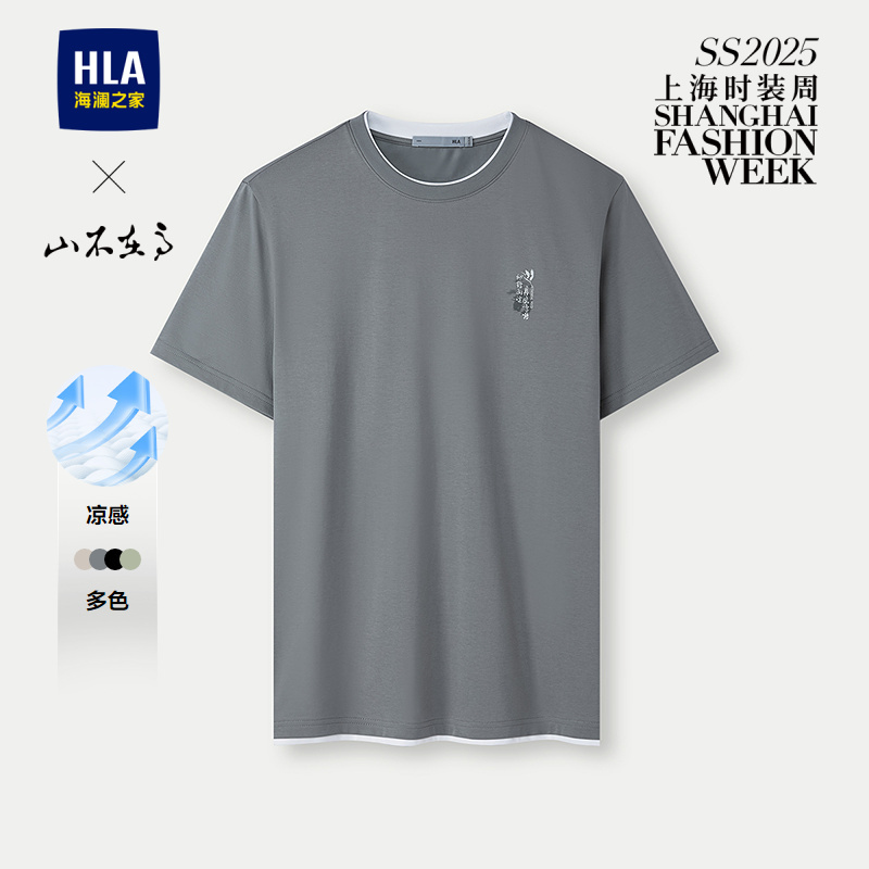 已选:HLA海澜之家山不在高系列短袖T恤25春夏新撞色双层领假两件短t男HNTBW2J105A