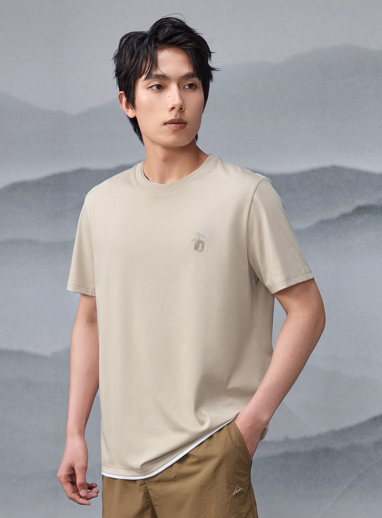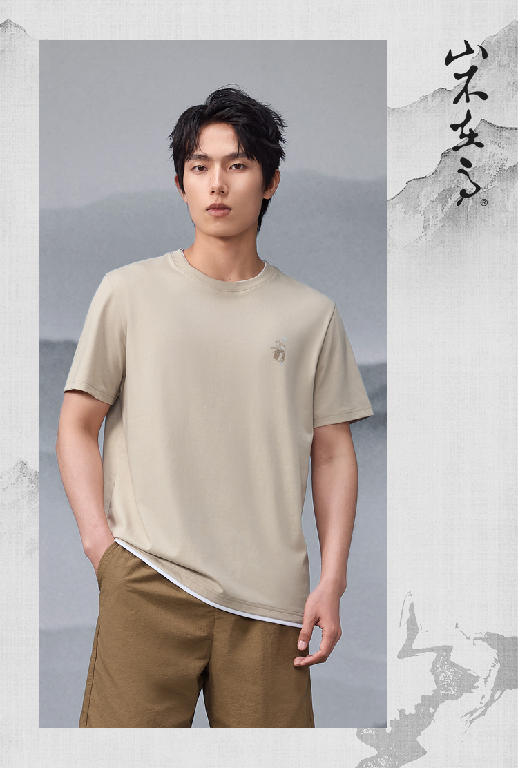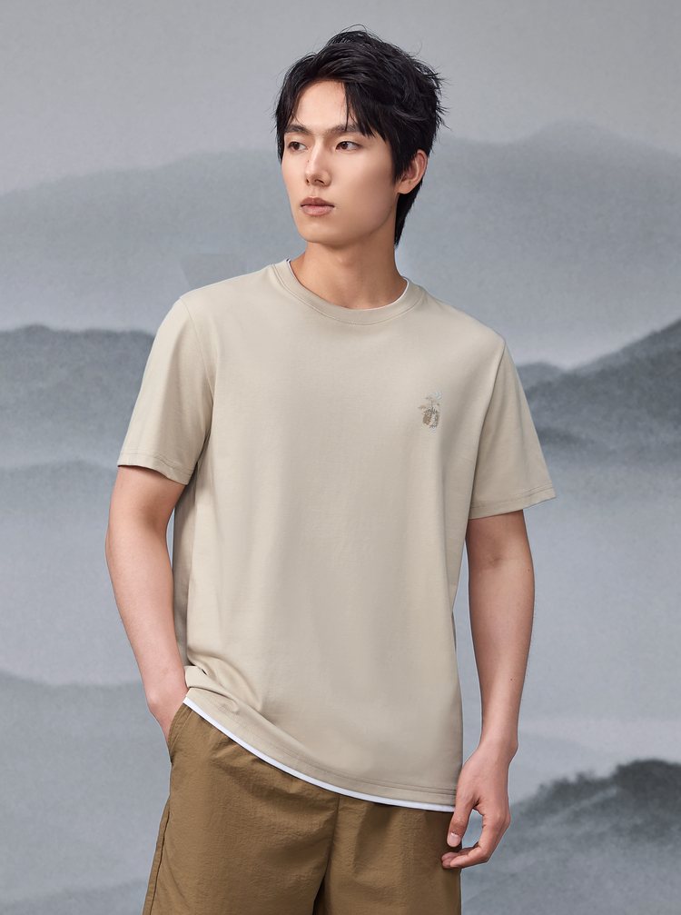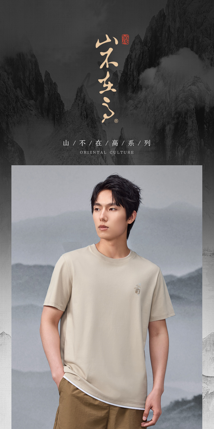 HLA海澜之家山不在高系列短袖T恤25春夏新撞色双层领假两件短t男HNTBW2J105A