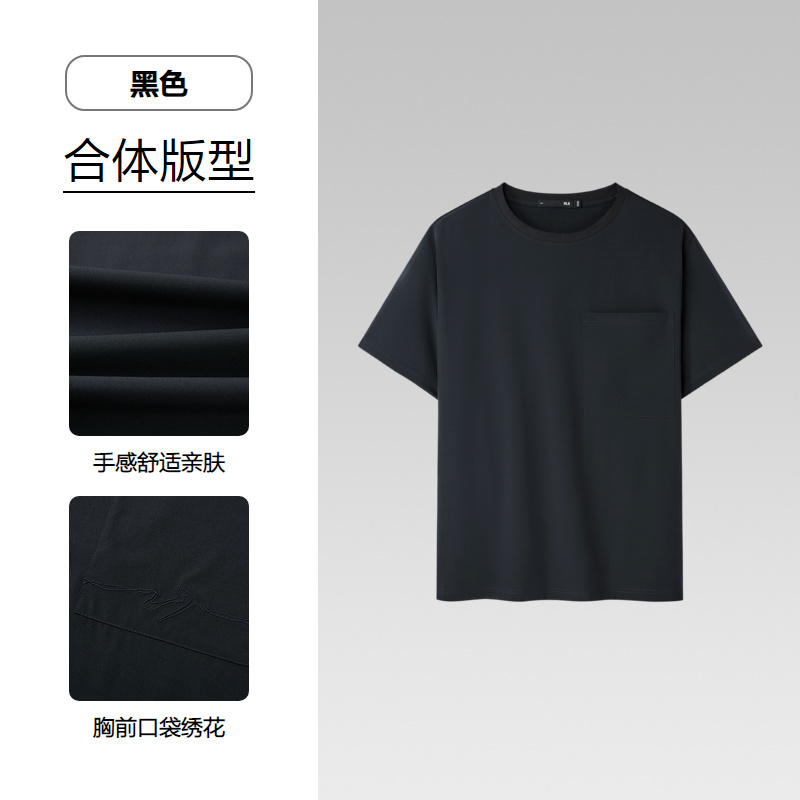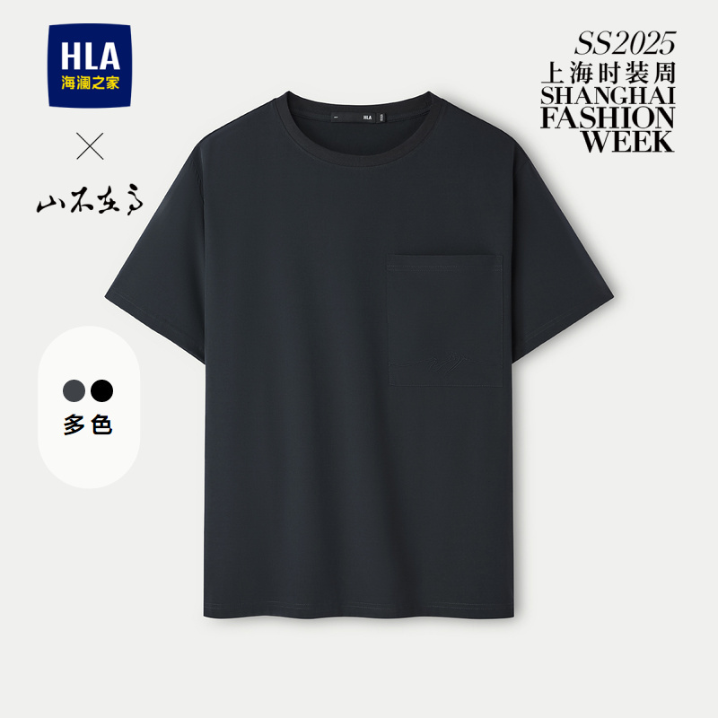 已选:HLA海澜之家山不在高系列短袖T恤25春夏新款绣花口袋透气上衣男HNTBW2J177A