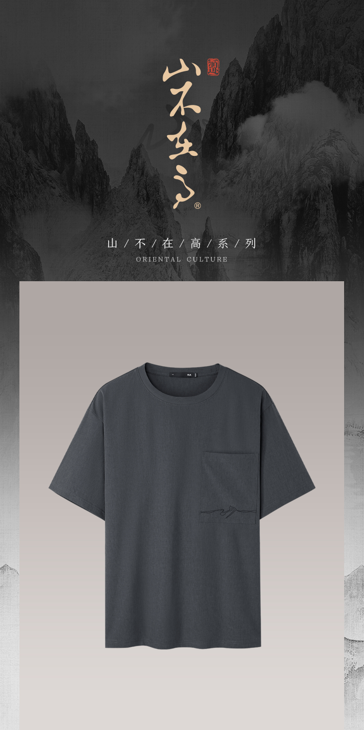 HLA海澜之家山不在高系列短袖T恤25春夏新款绣花口袋透气上衣男HNTBW2J177A