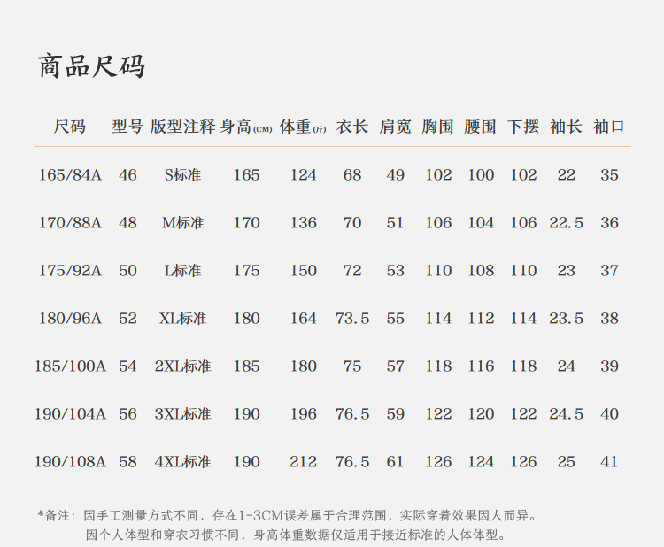 尺码颜色