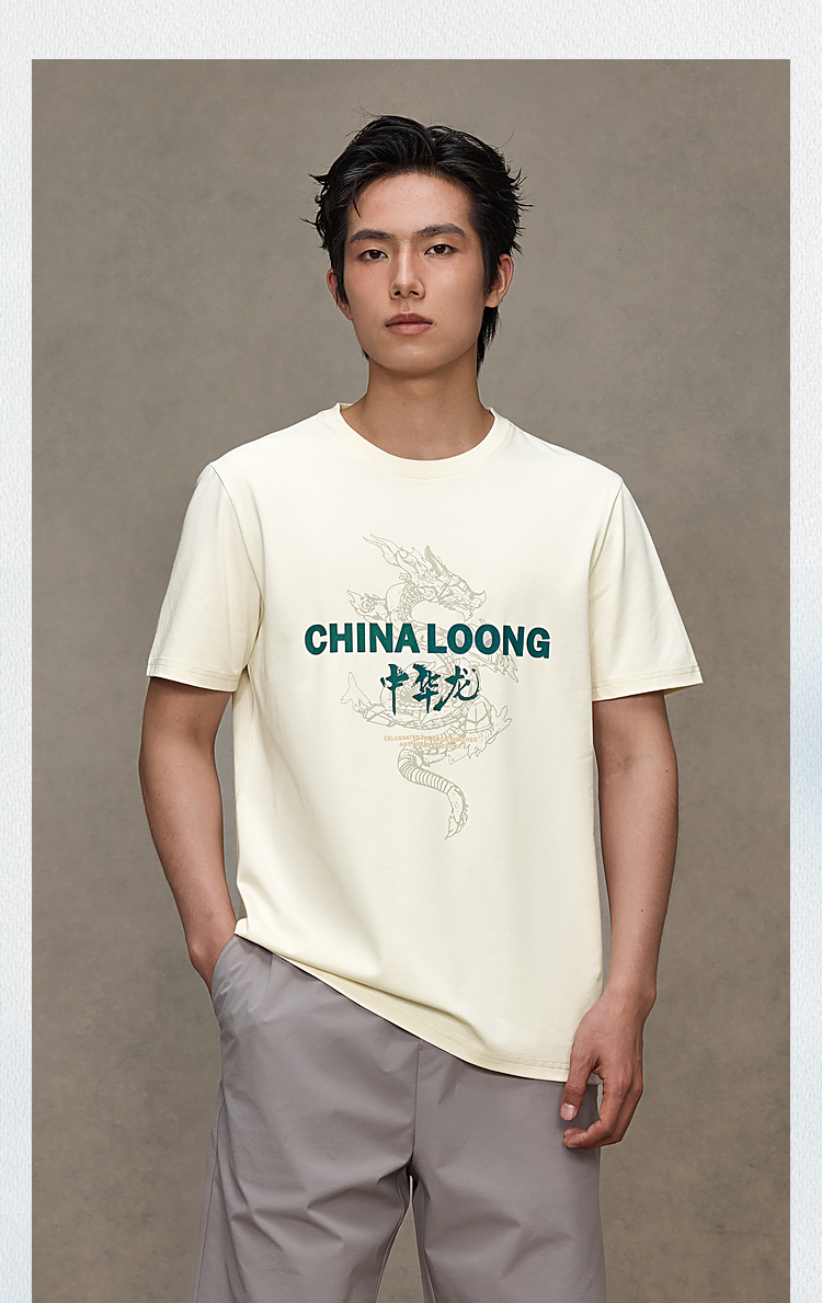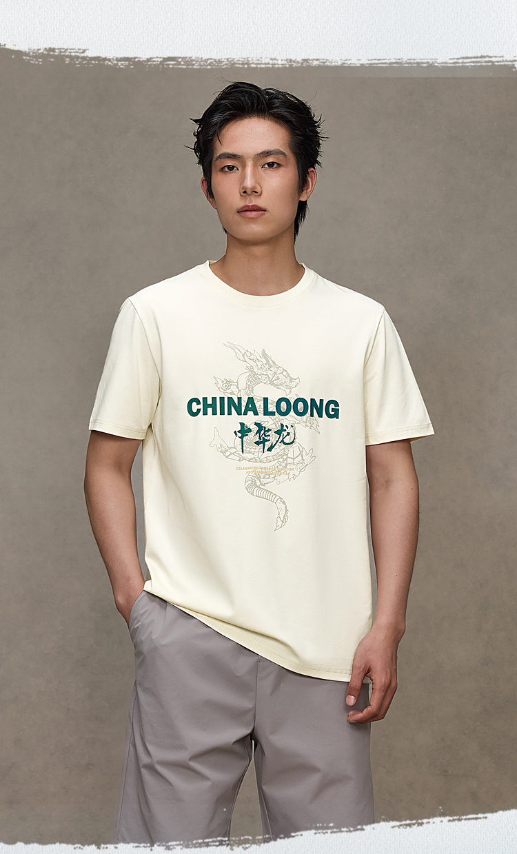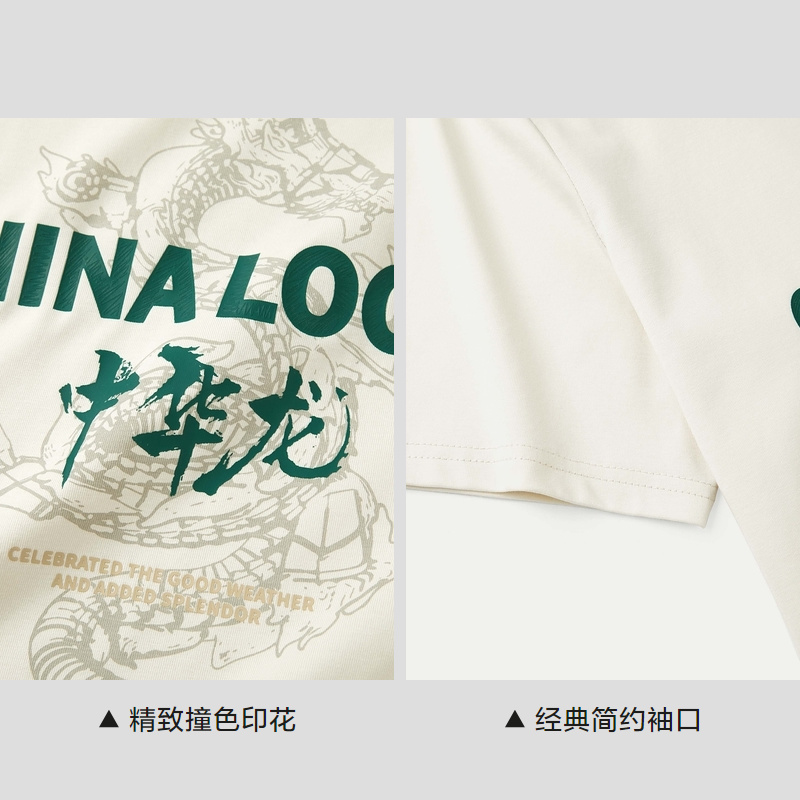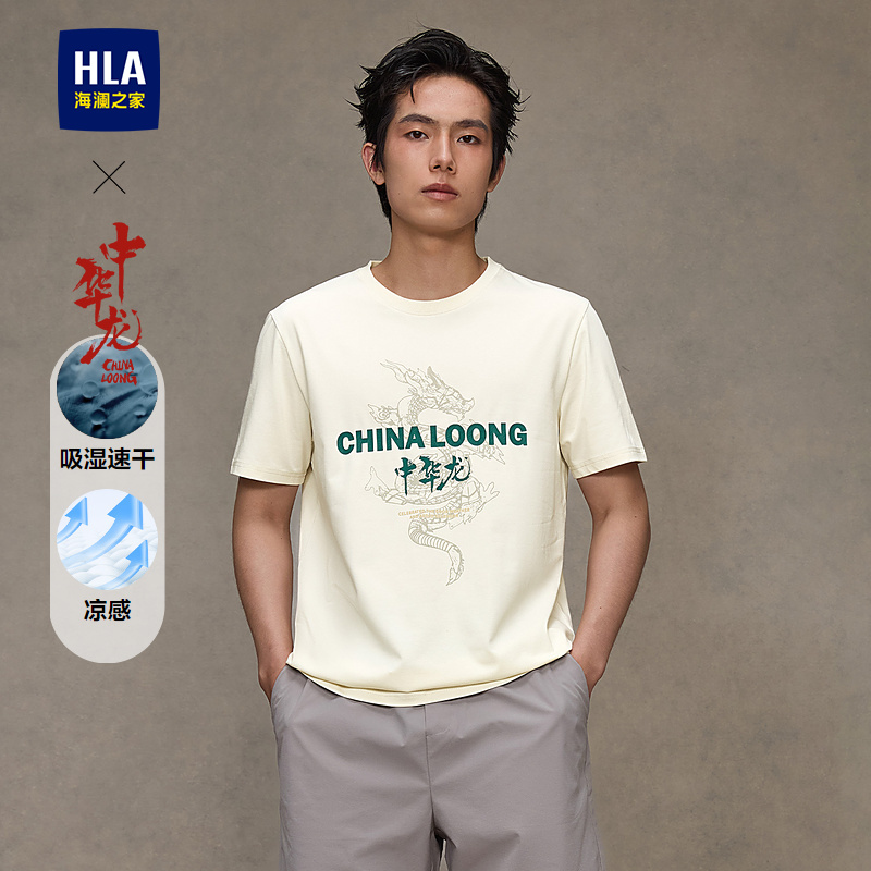 HLA海澜之家中华龙系列短袖T恤25春夏新撞色印花凉感速干短袖男HNTBW2J199A