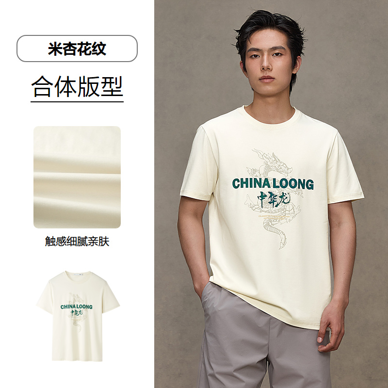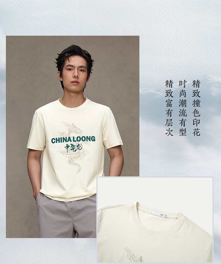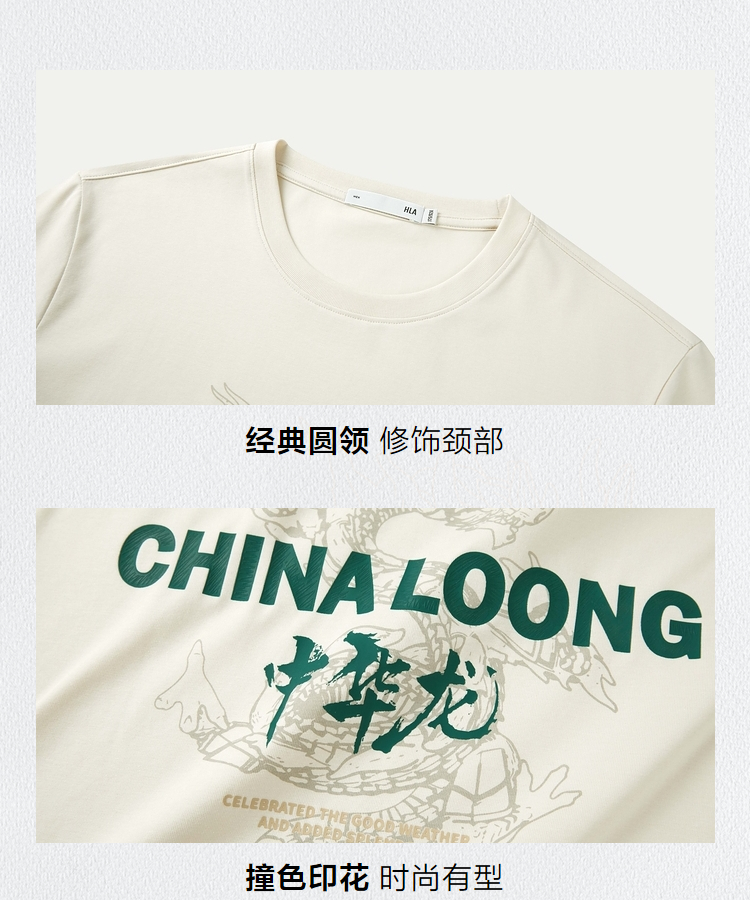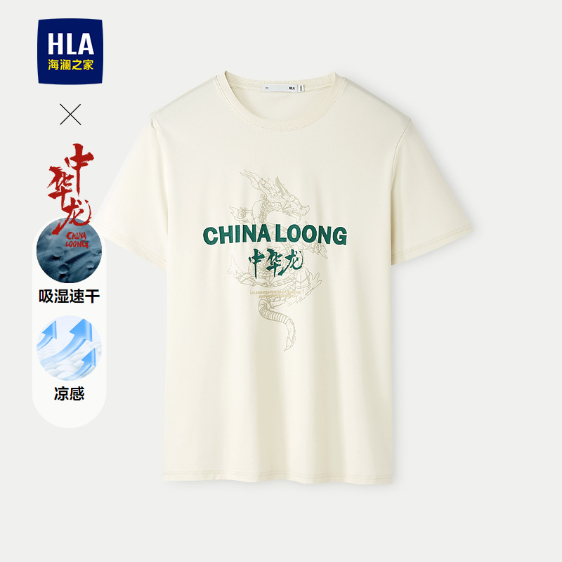 已选:HLA海澜之家中华龙系列短袖T恤25春夏新撞色印花凉感速干短袖男HNTBW2J199A