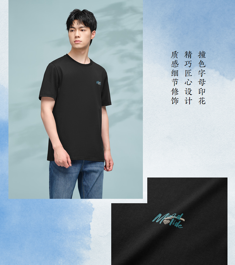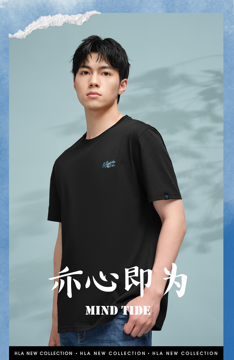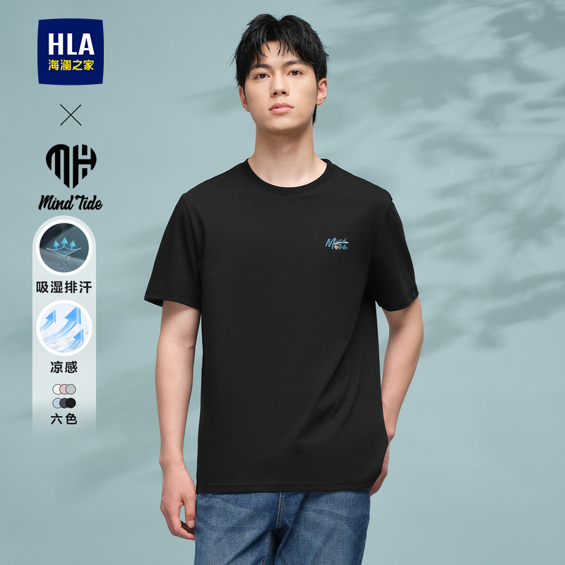 已选:HLA/海澜之家亦心即为系列凉感短袖T恤2024春夏新款圆领印花短t男