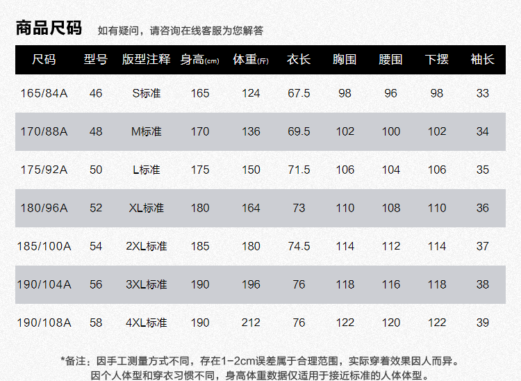 尺码颜色