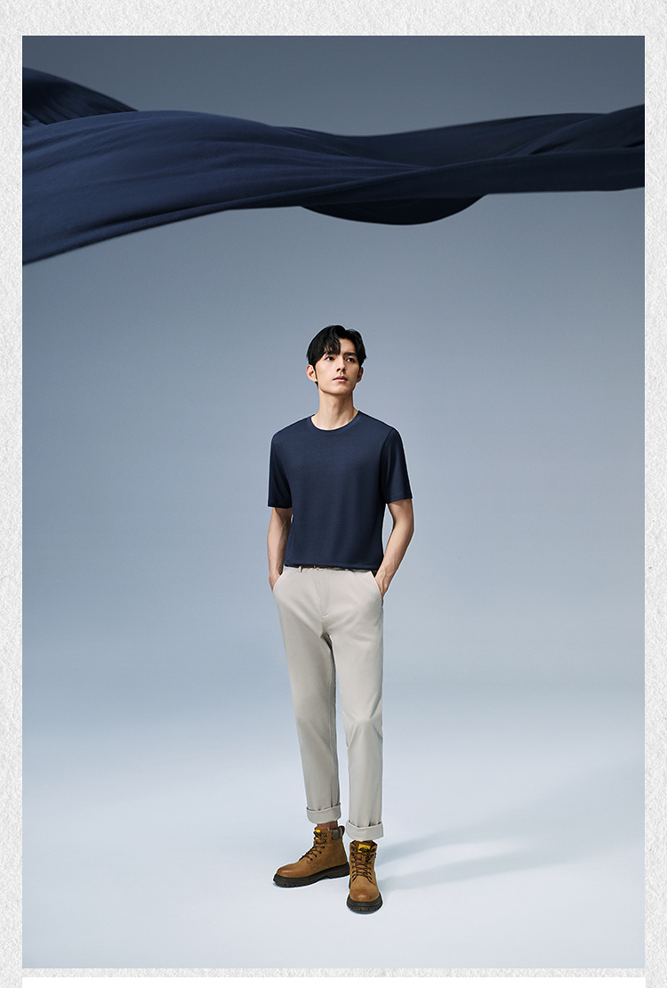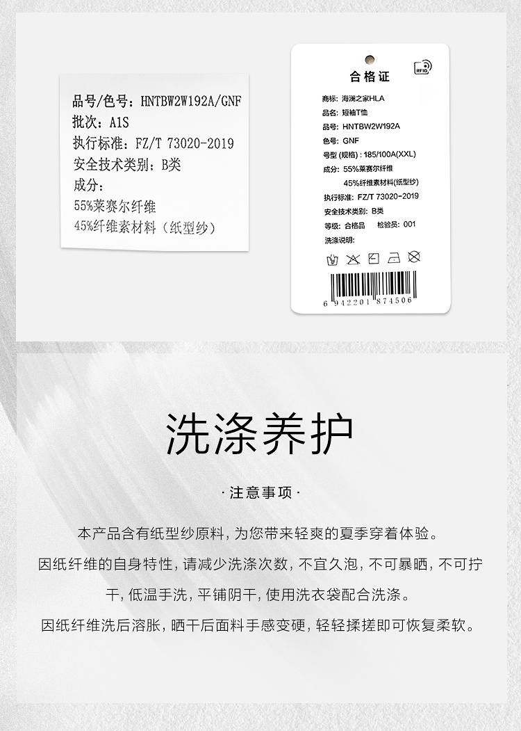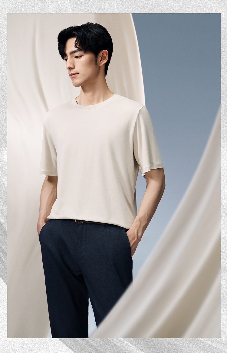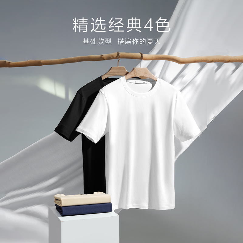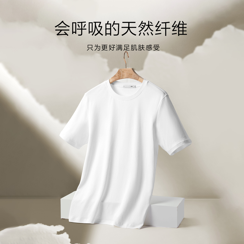 已选:HLA海澜之家丝感纸型纱T恤2024春夏新款圆领清爽速干纯色短袖男HNTBW2W192A