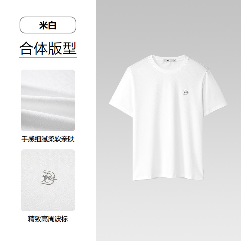HLA海澜之家丝光工艺短袖T恤25春夏新含莱赛尔提花舒适上衣男HNTCD2J033A