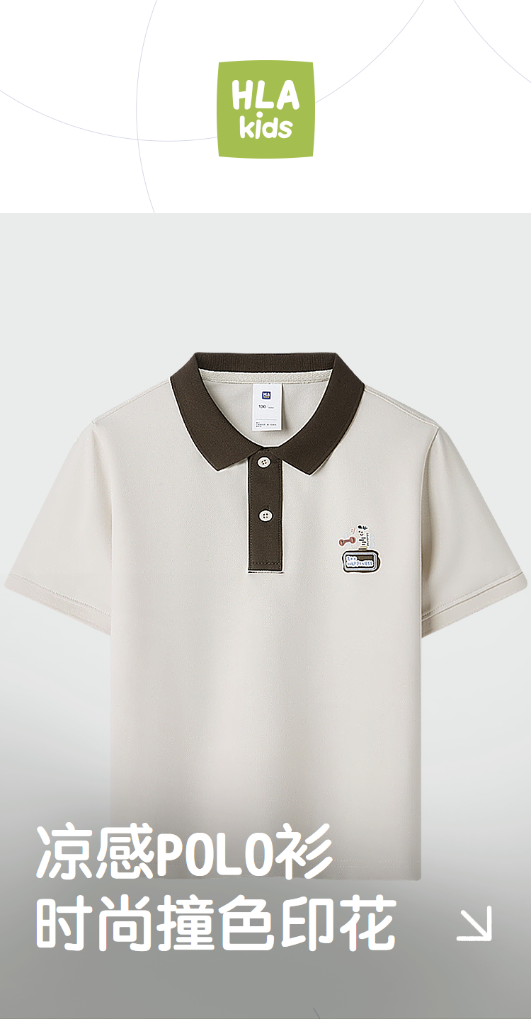 已选:HLA海澜之家山不在高系列POLO衫26春夏新凉感印花翻领短袖男女童HNTEW2F008A