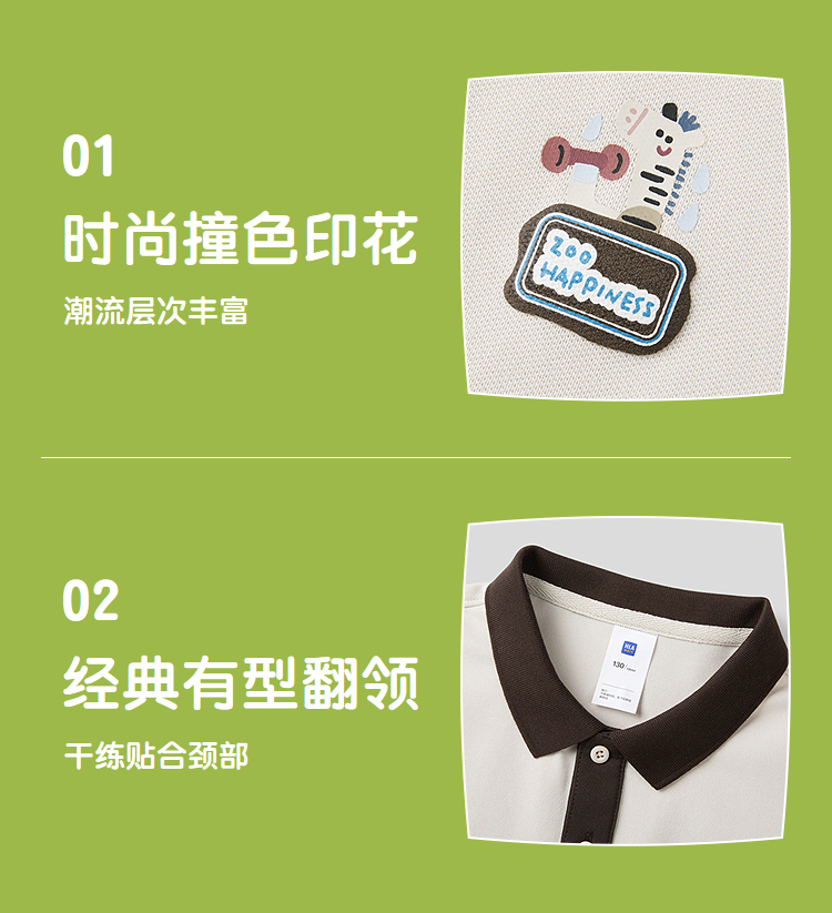 HLA海澜之家山不在高系列POLO衫26春夏新凉感印花翻领短袖男女童HNTEW2F008A