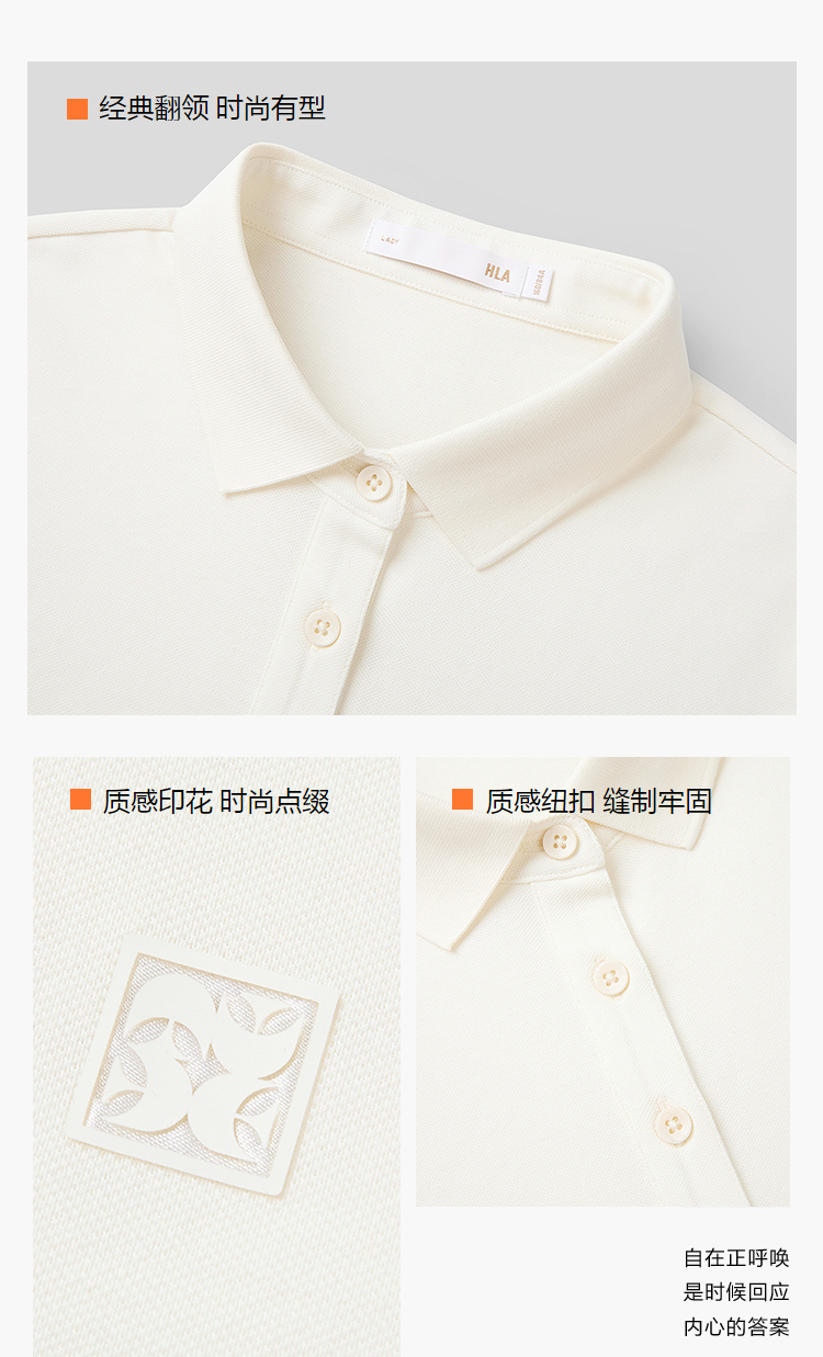 已选:HLA海澜之家短袖POLO衫2026春夏新款翻领微弹质感印花上衣女装HNTFW2F509A