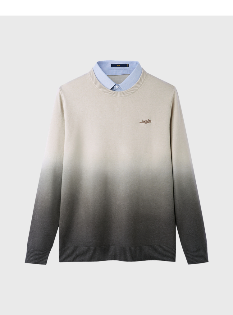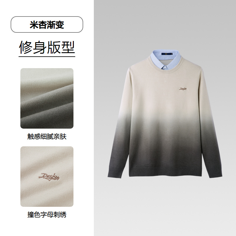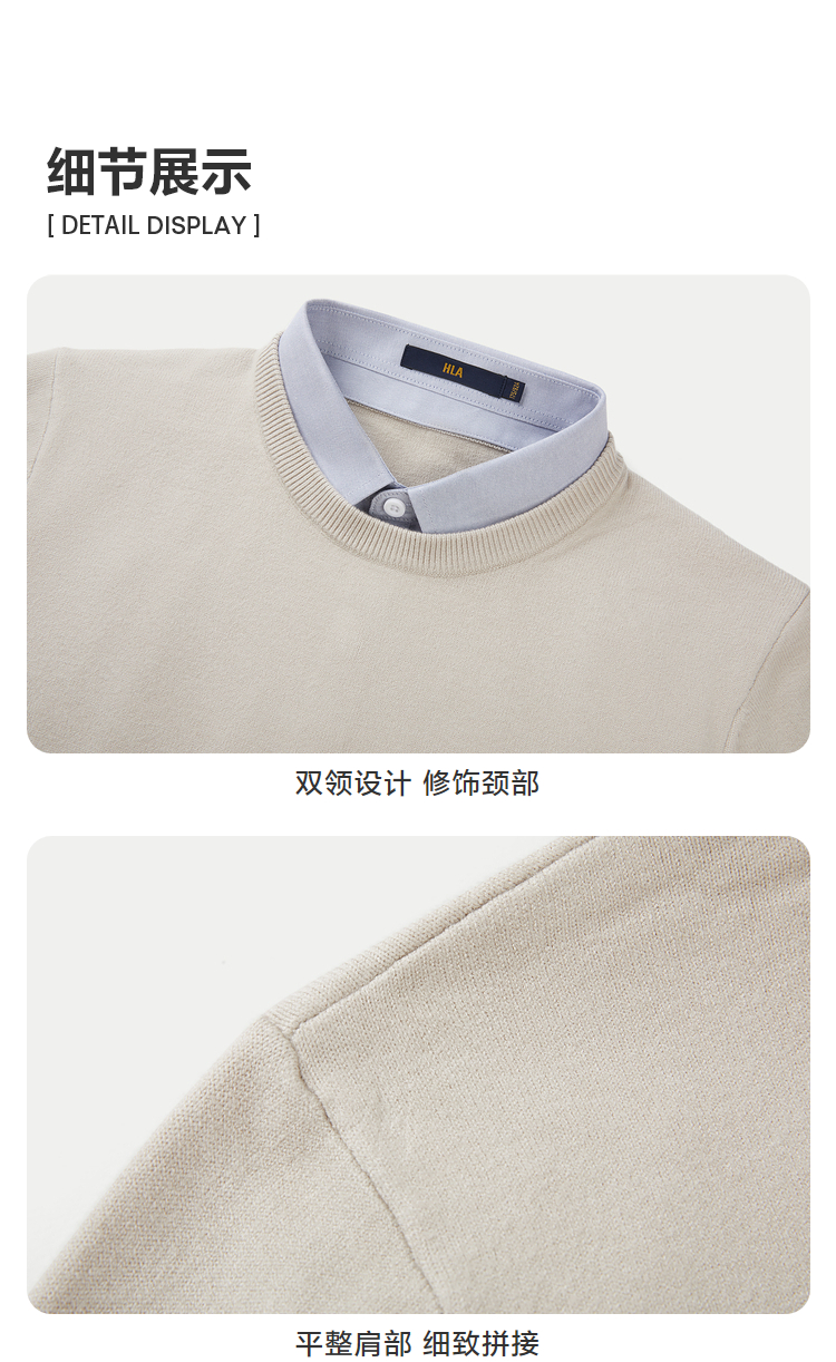 HLA海澜之家假两件针织衫24秋季新款双领设计撞色刺绣保暖毛衣男HNTHD3W041A
