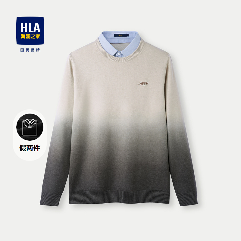 已选:HLA海澜之家假两件针织衫24秋季新款双领设计撞色刺绣保暖毛衣男HNTHD3W041A