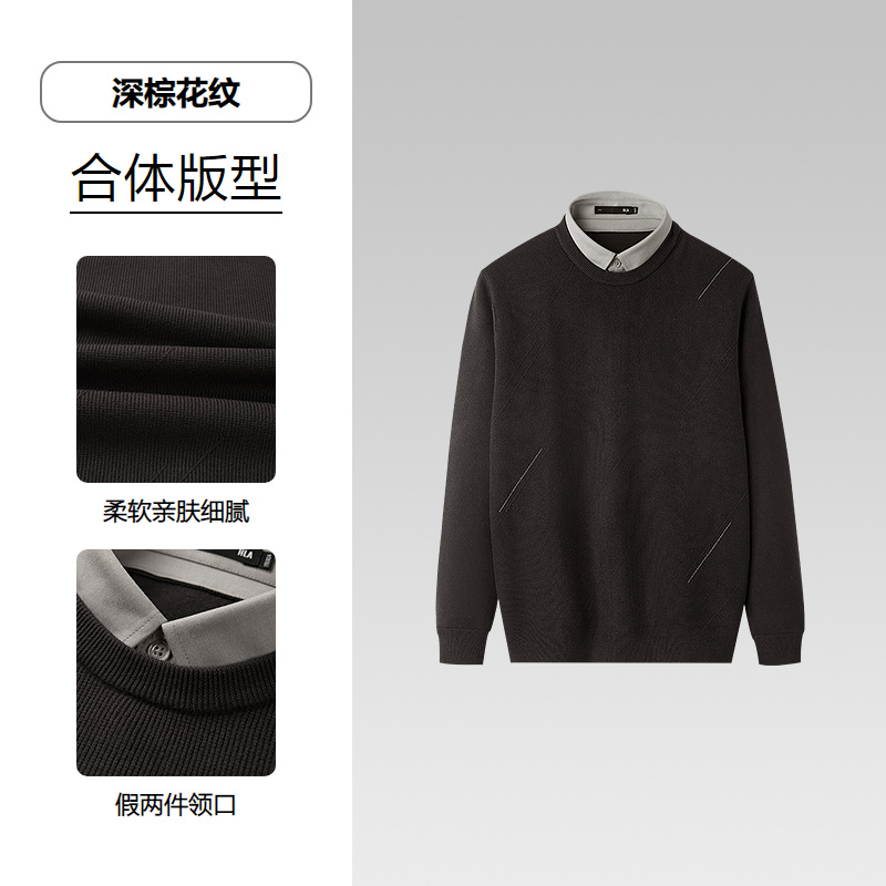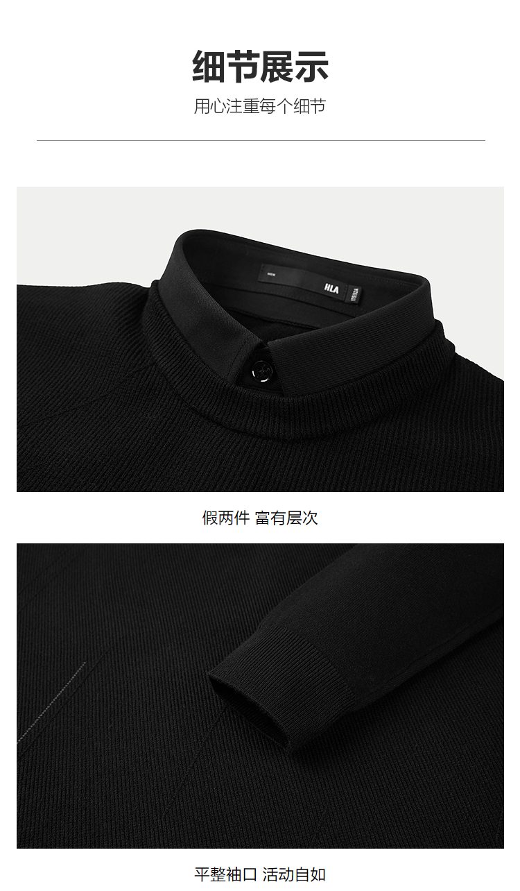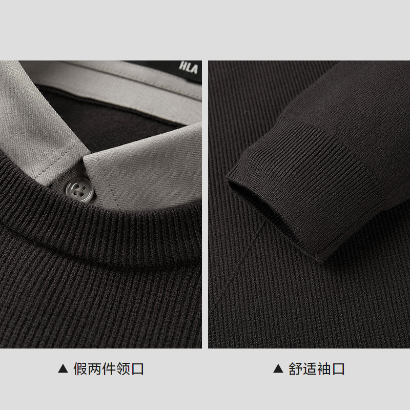 已选:HLA海澜之家假两件双领针织衫25春夏新圆领商务线条提花毛衣男HNTHW3J006A