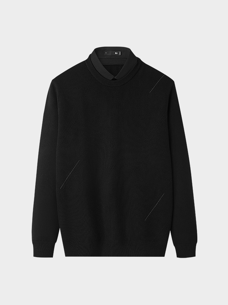 HLA海澜之家假两件双领针织衫25春夏新圆领商务线条提花毛衣男HNTHW3J006A