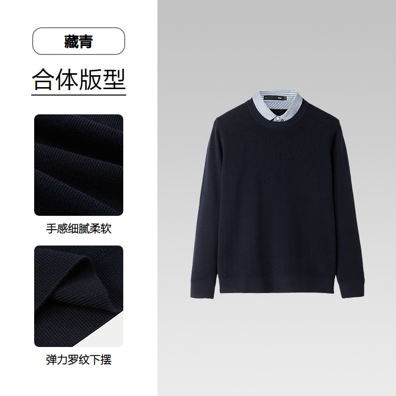 已选:HLA海澜之家轻商务时尚系列双领针织衫25秋新含羊毛假两件毛衣男HNTHW3J009A