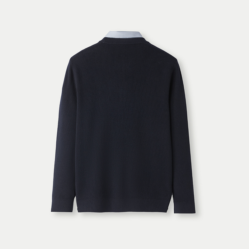 HLA海澜之家轻商务时尚系列双领针织衫25秋新含羊毛假两件毛衣男HNTHW3J009A