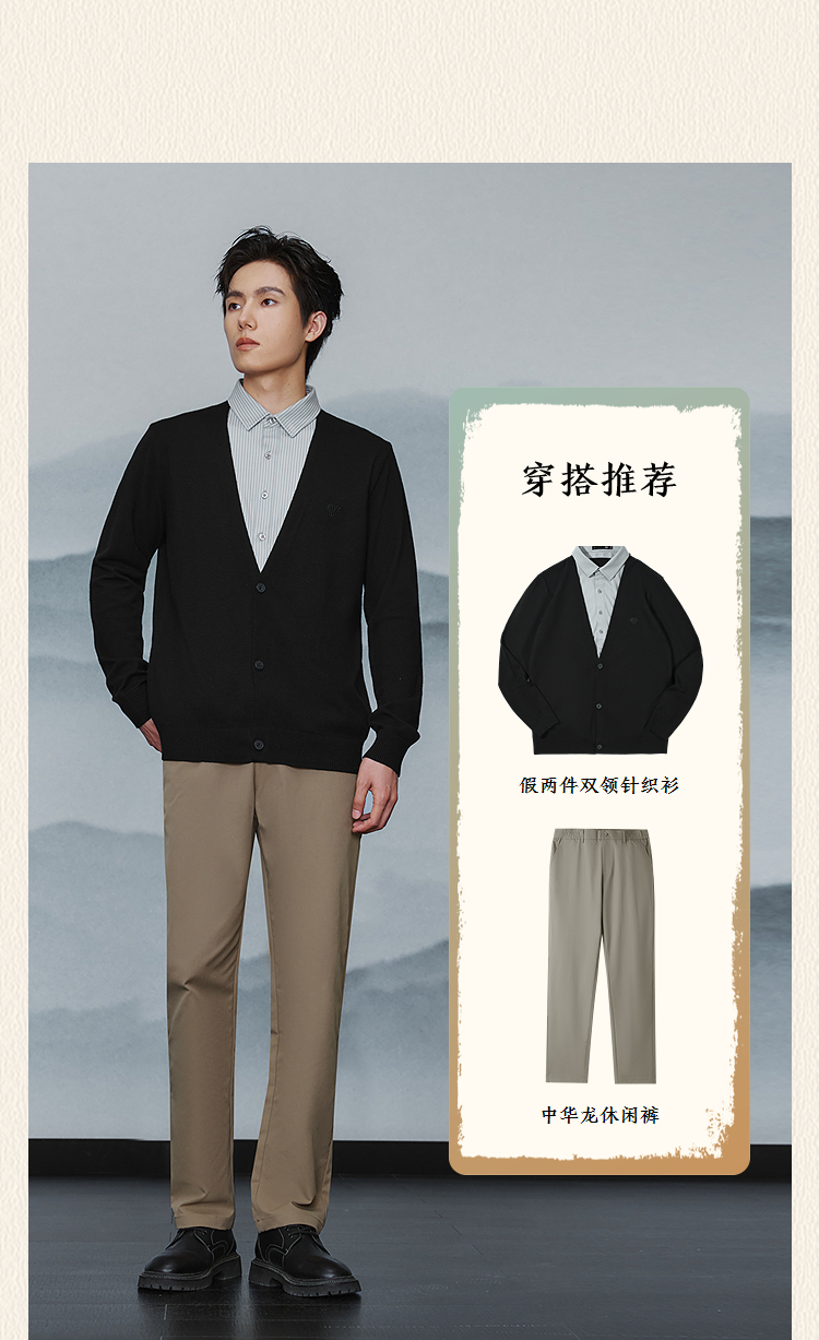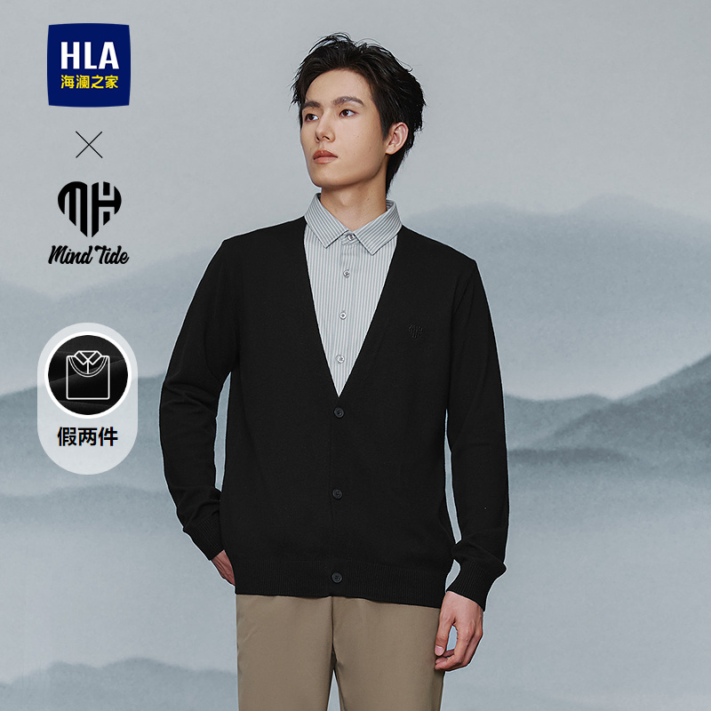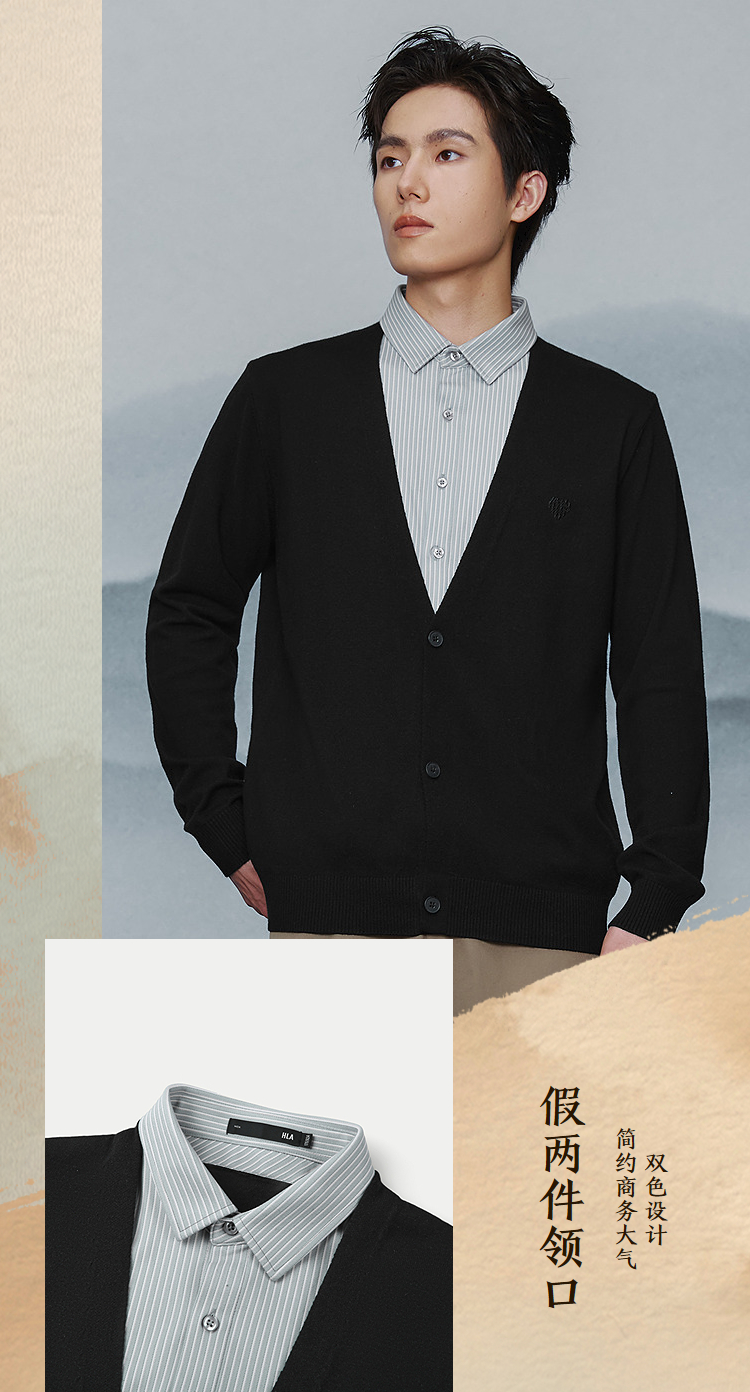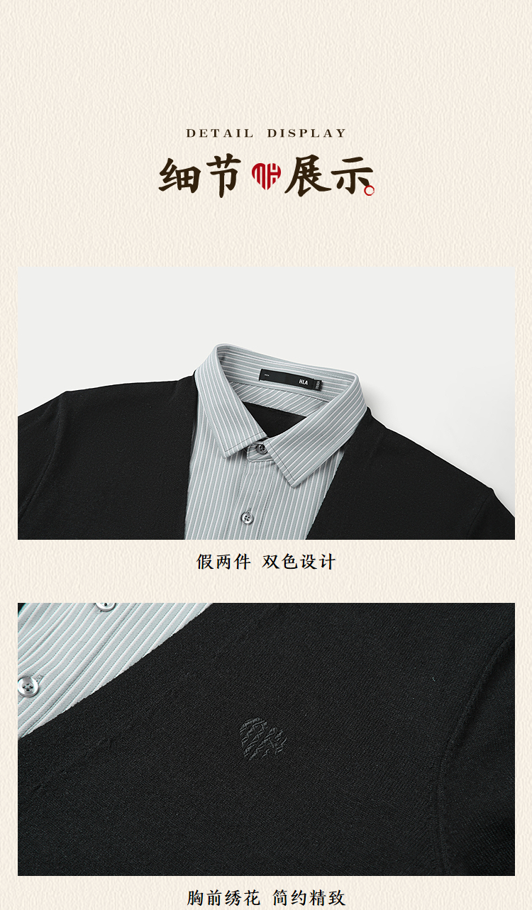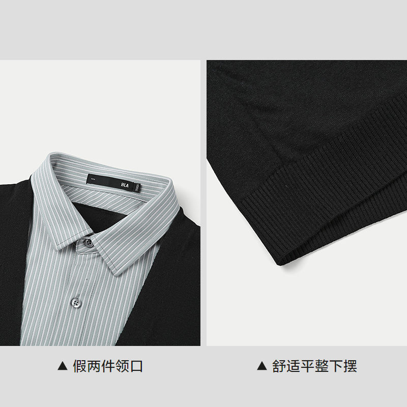 已选:HLA海澜之家亦心即为系列假两件双领针织衫25秋新双色柔软毛衣男HNTHW3J016A