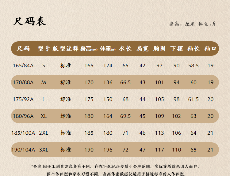 尺码颜色
