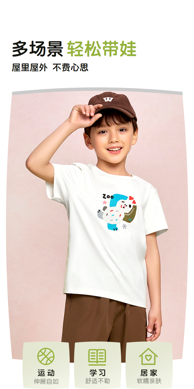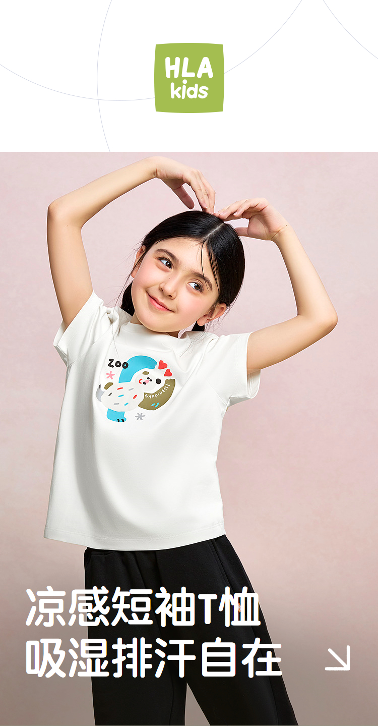 已选:HLA海澜之家园里真奇妙系列短T26春夏新凉感吸湿排汗男女童装HNTKW2F009A