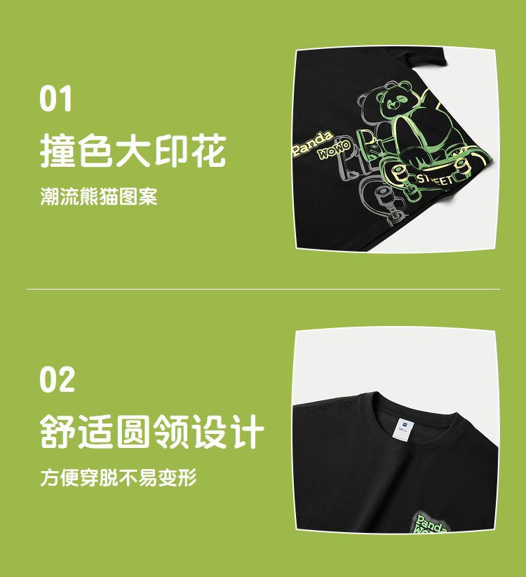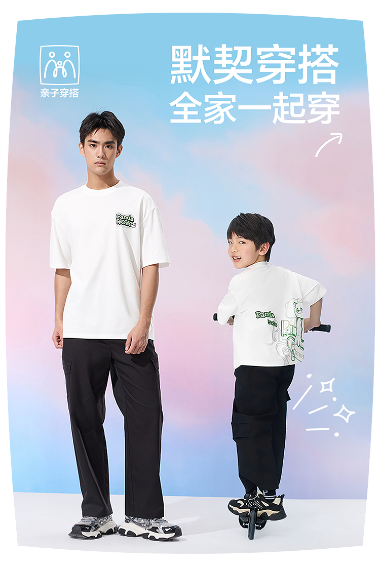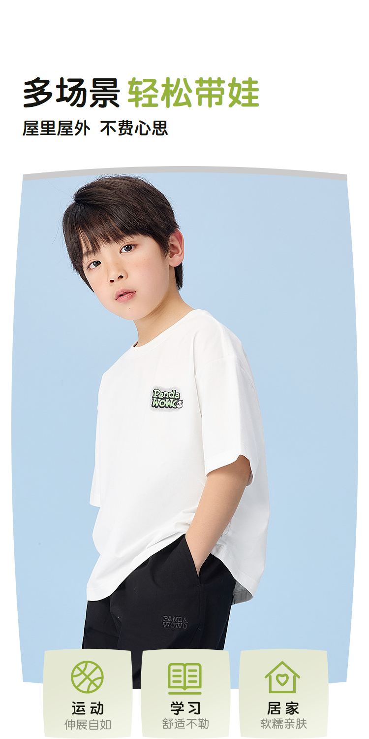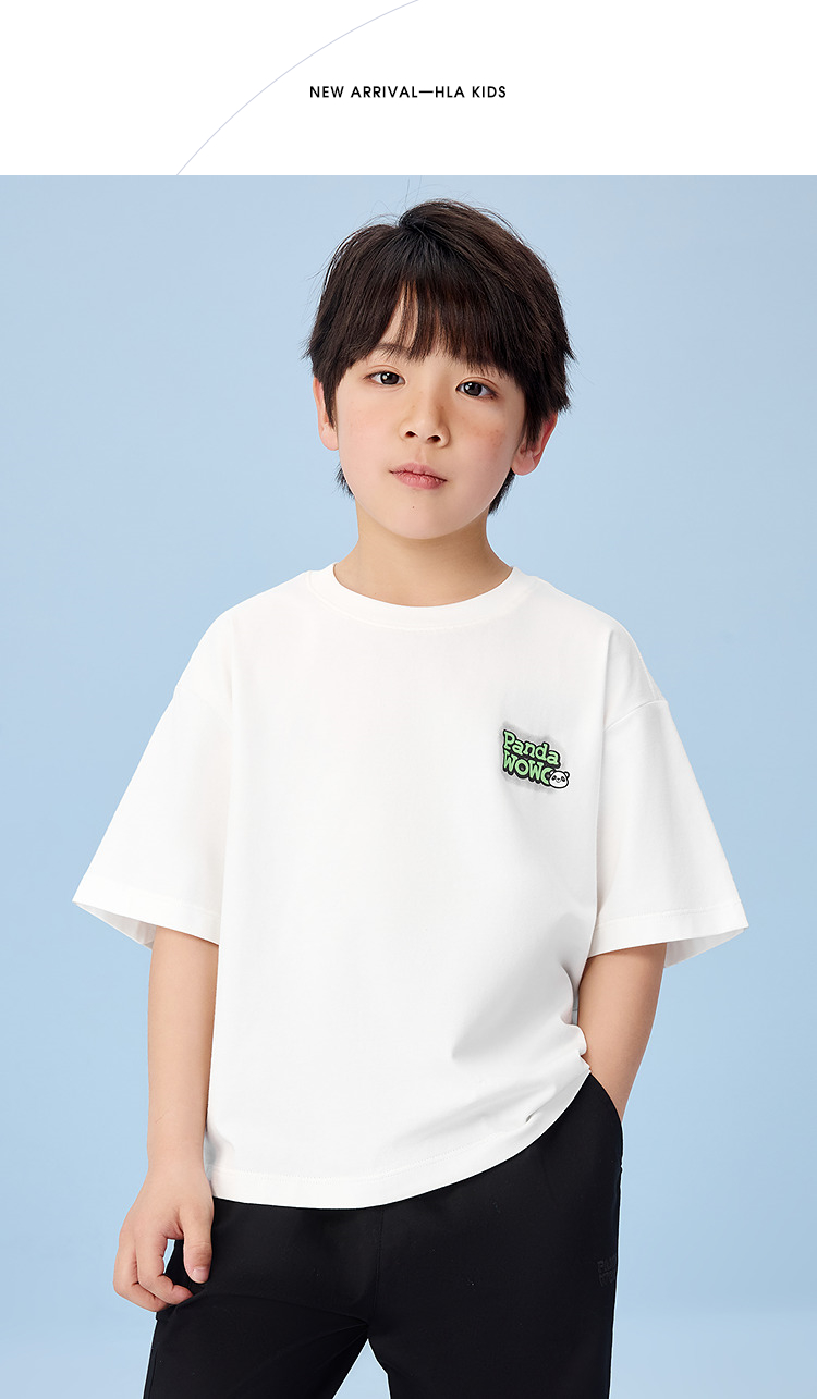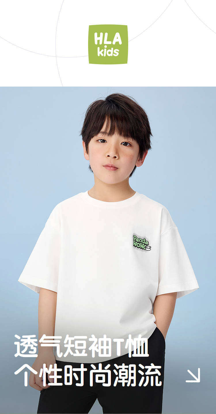 已选:HLA海澜之家panda wowo熊猫短袖T恤25春夏新防蚊透气上衣男女童HNTKW2J015A