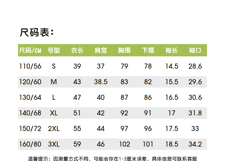 尺码颜色