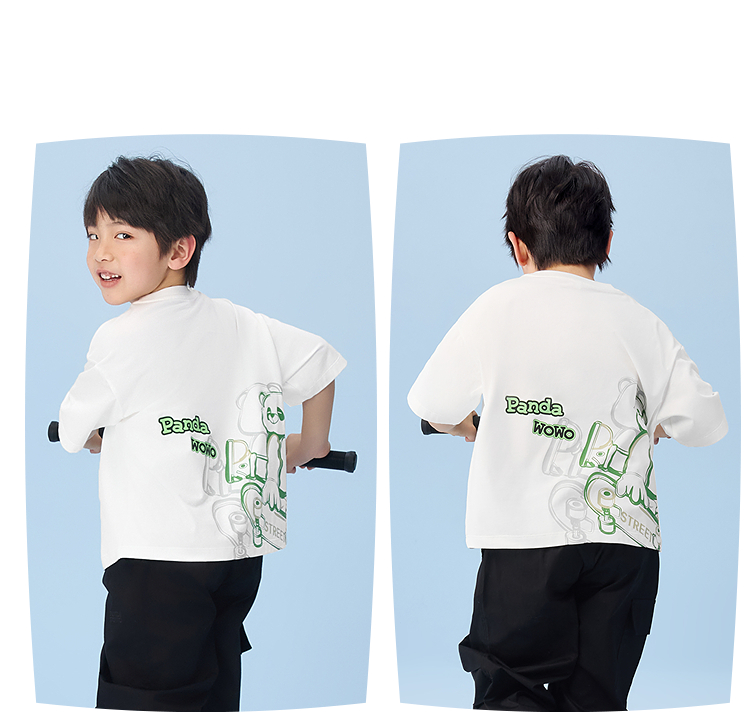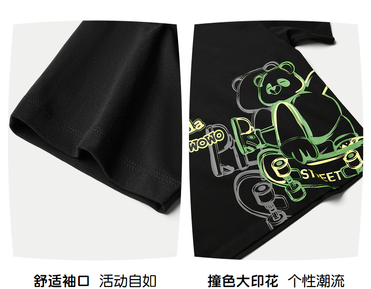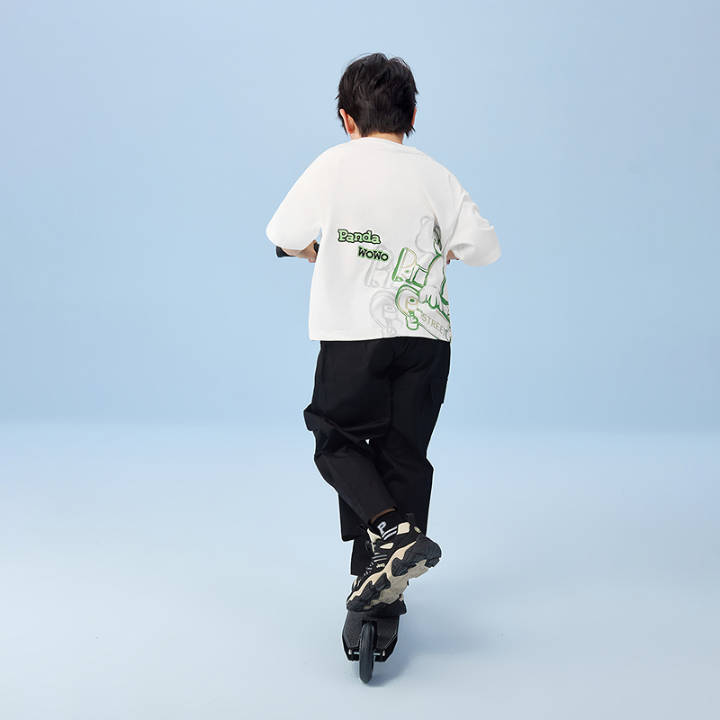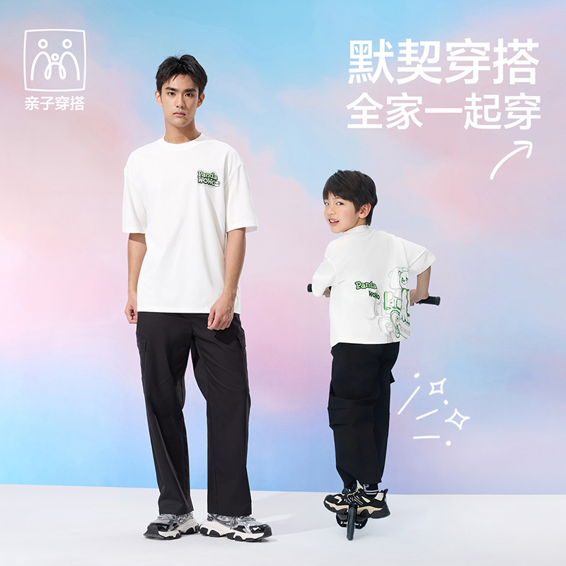 HLA海澜之家panda wowo熊猫短袖T恤25春夏新防蚊透气上衣男女童HNTKW2J015A