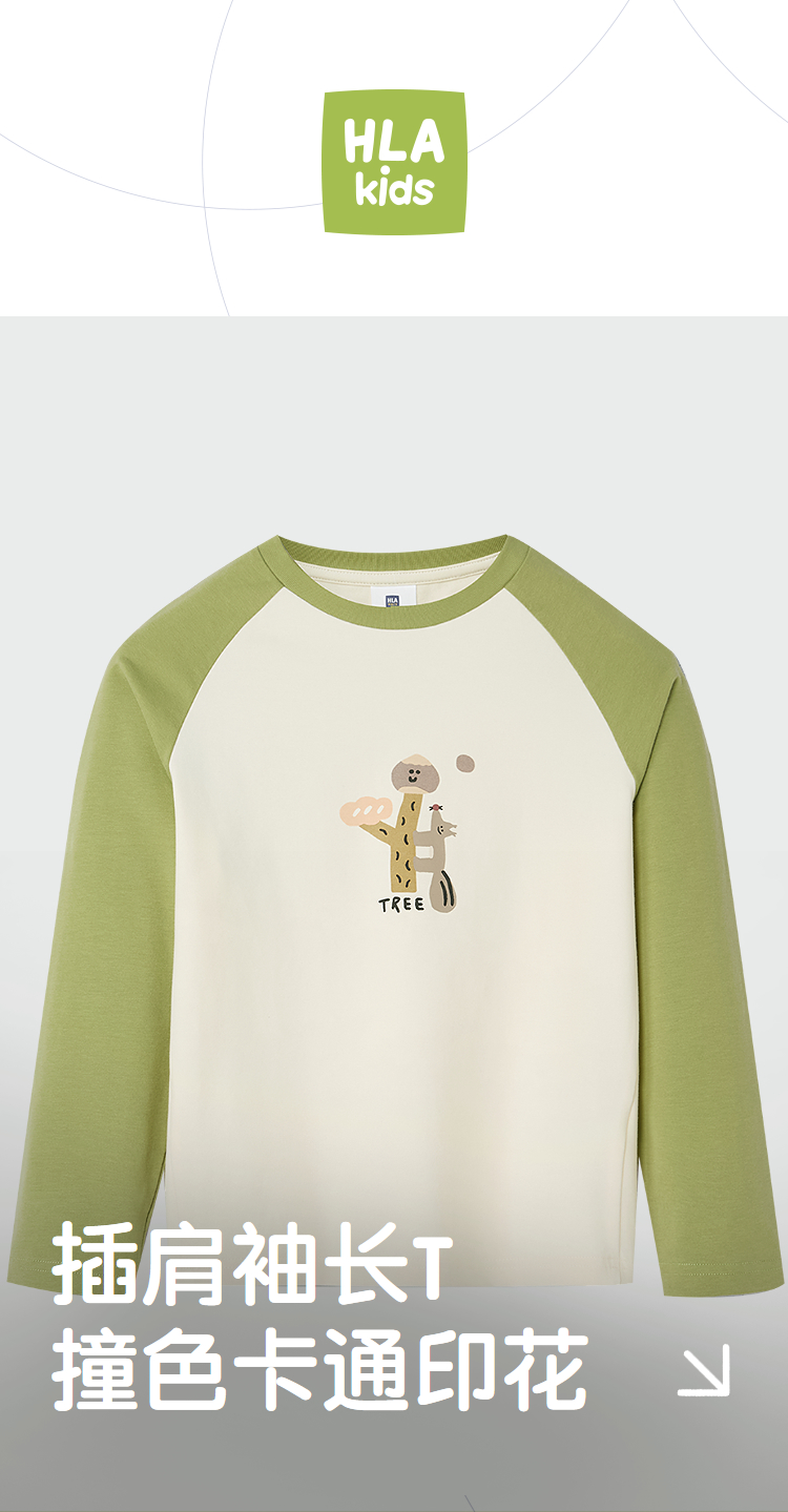 已选:HLA海澜之家园里真奇妙系列长T26春夏新插肩袖儿童款男女童装HNTLW1F004A