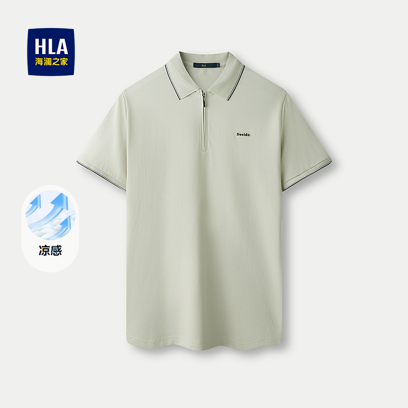 已选:HLA海澜之家凉感短袖POLO衫2025春夏新款透气无痕热压翻领上衣男HNTND2J057A