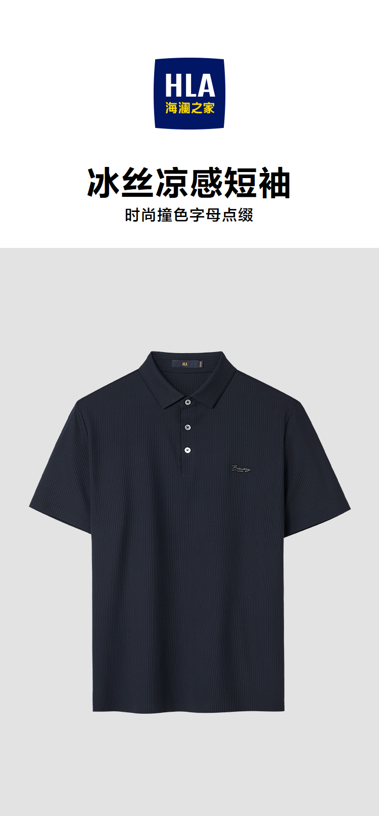 已选:HLA海澜之家冰丝凉感POLO衫2026春夏新款无痕热压锦氨弹力短袖男HNTPD2F083A