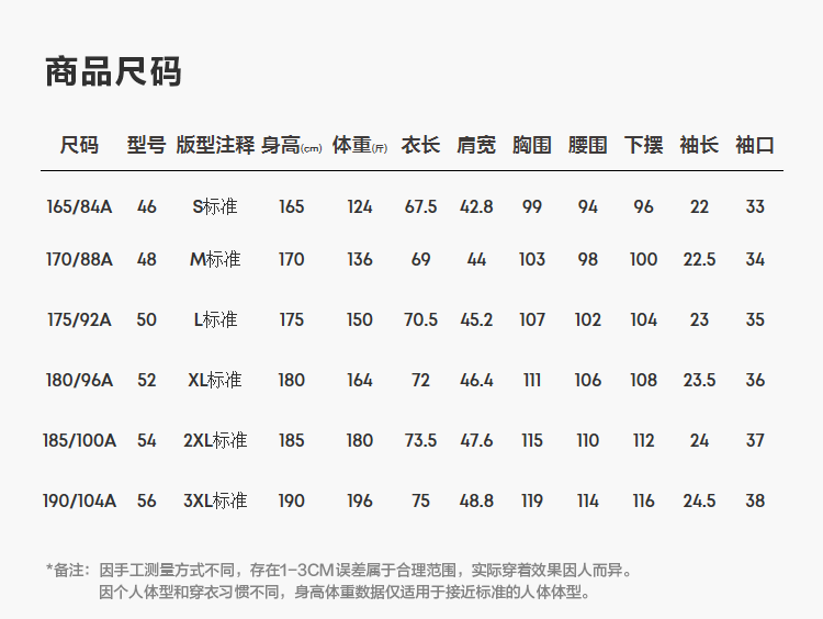 尺码颜色
