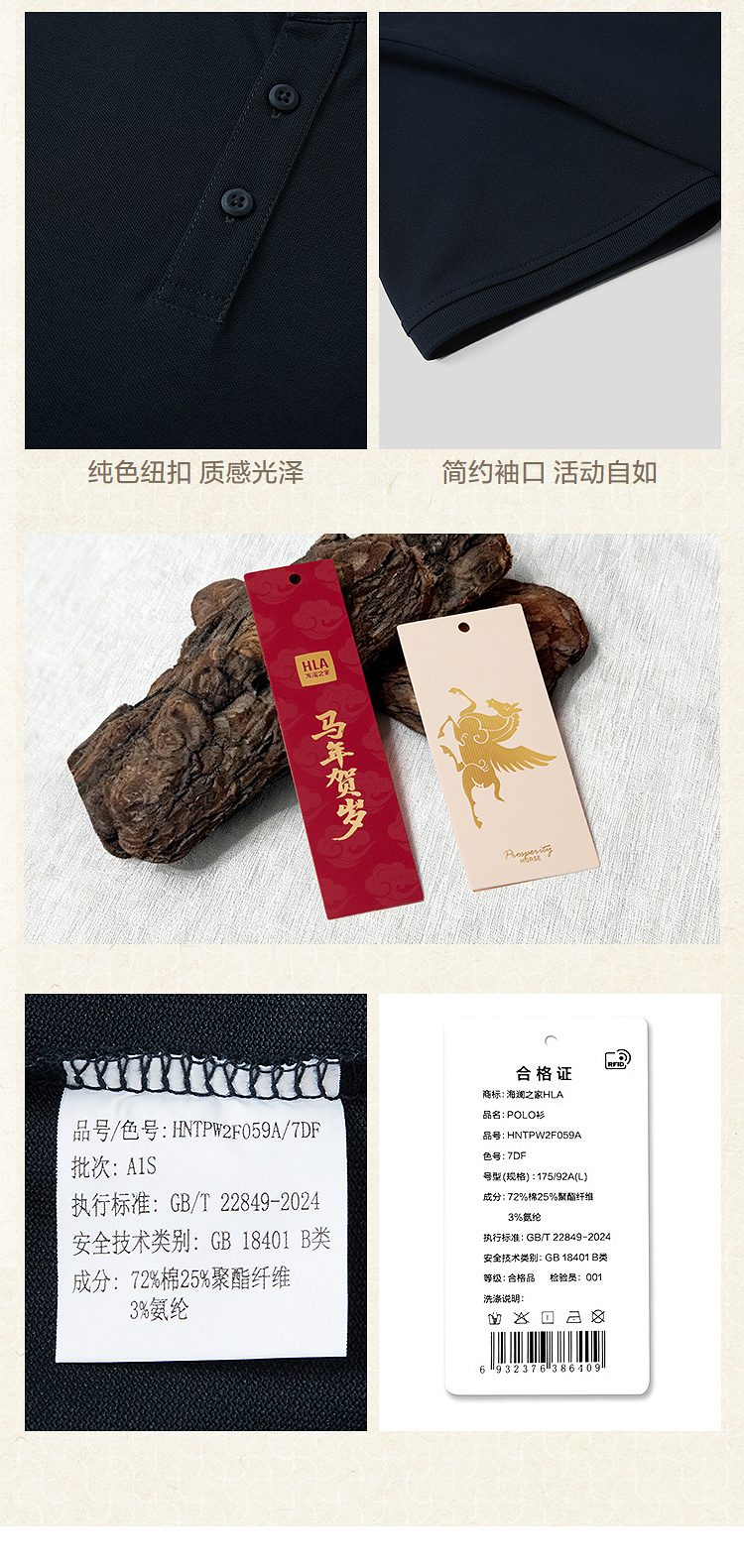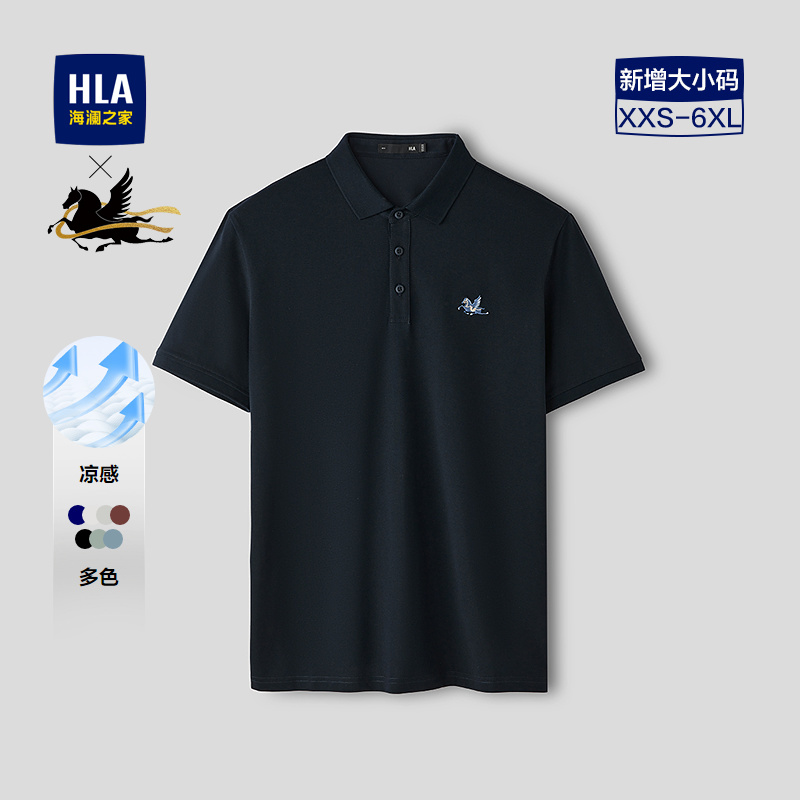 - HLA海澜之家马年贺岁系列POLO衫26春秋新撞色刺绣翻领凉感短袖男HNTPW2F059A