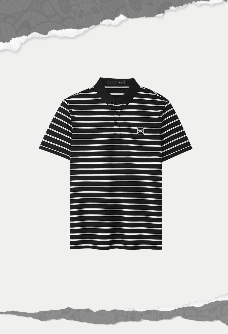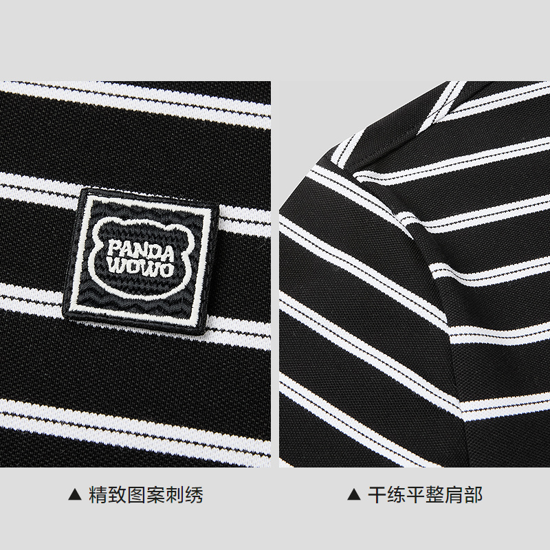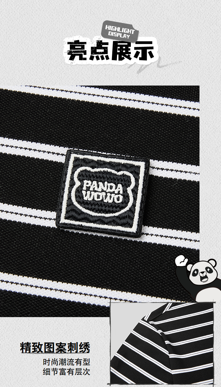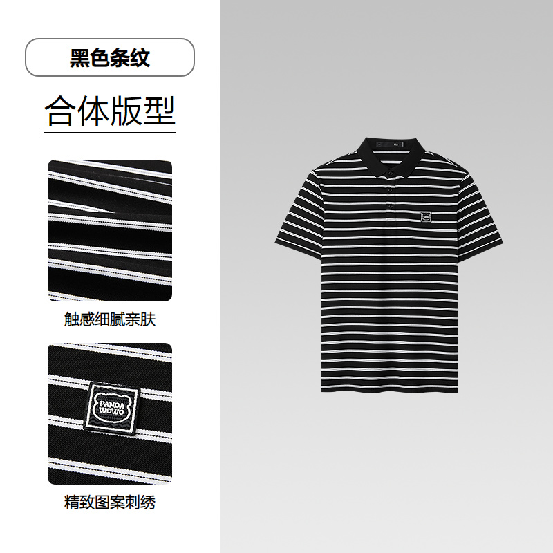 HLA海澜之家panda wowo熊猫系列POLO衫2026春夏新条纹翻领短袖男HNTPW2F098A