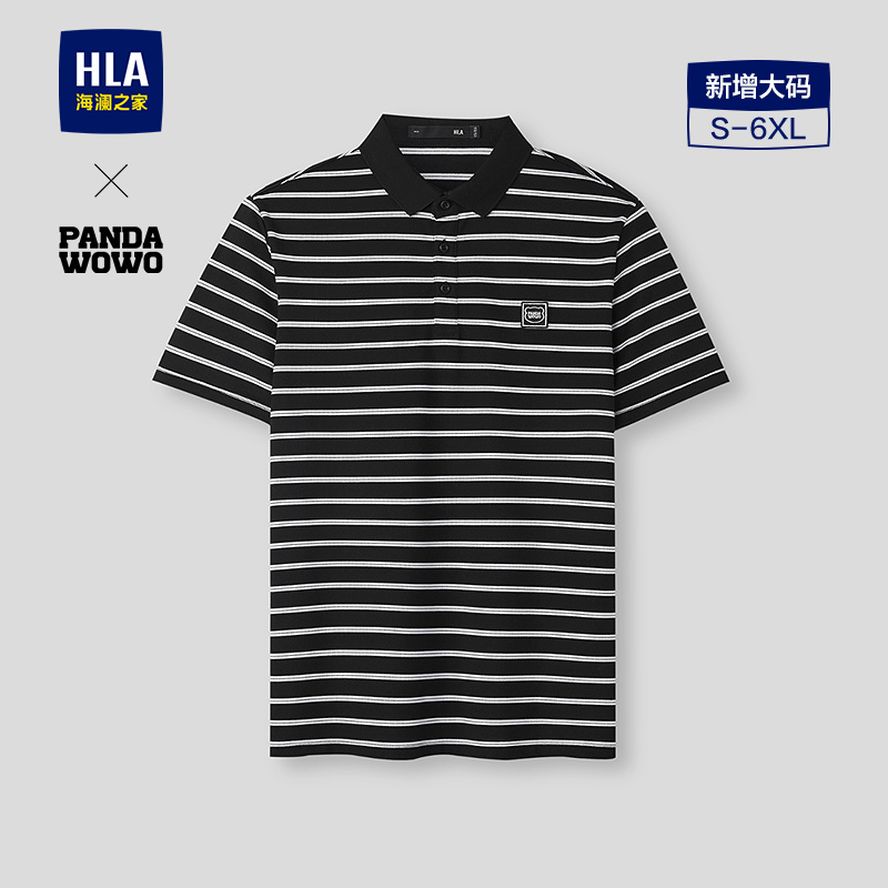 已选:HLA海澜之家panda wowo熊猫系列POLO衫2026春夏新条纹翻领短袖男HNTPW2F098A